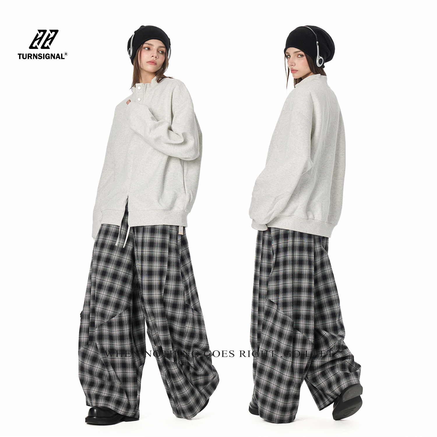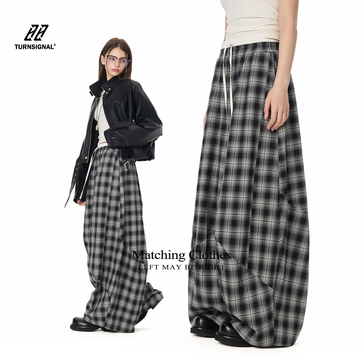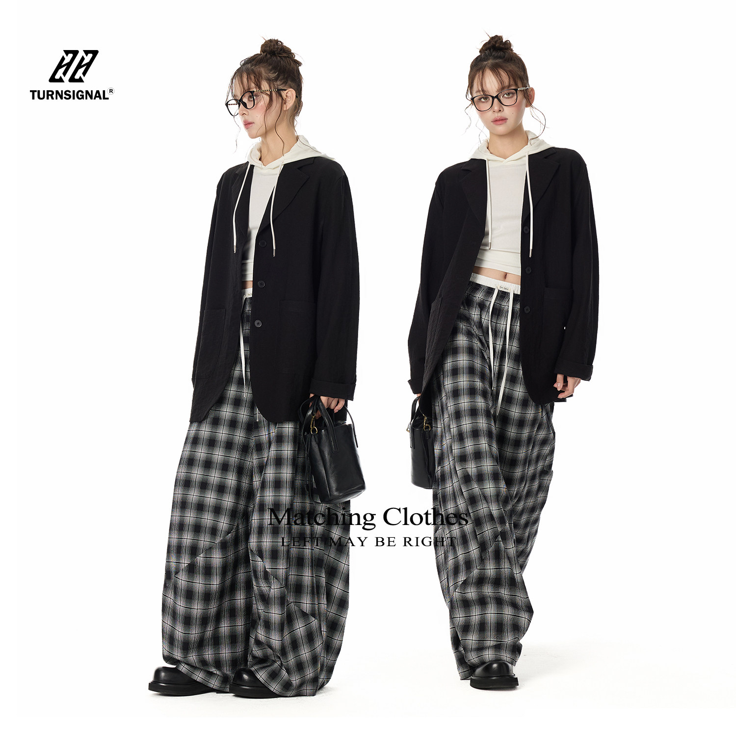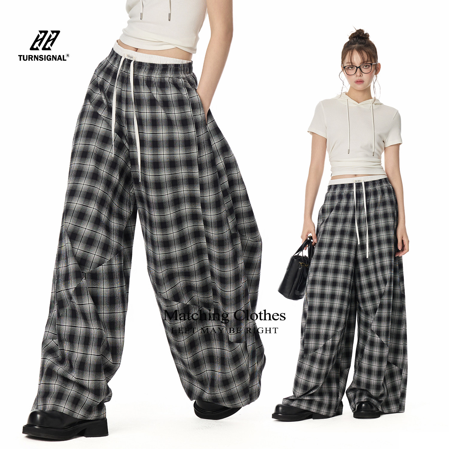 天猫Turnsignal格子休闲阔腿裤女春季2026新款直筒宽松格纹运动长裤秋