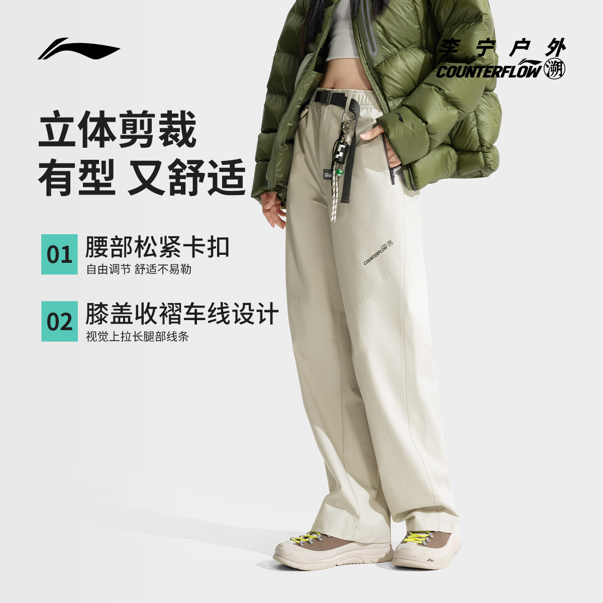 天猫李宁户外CF溯丨运动长裤女士长裤女装裤子直筒梭织休闲宽松运动裤
