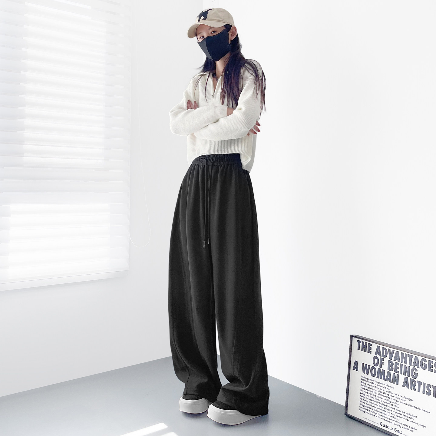 天白色百搭阔腿裤女2025春季大码胖mm直筒垂感运动裤梨形身材山本裤