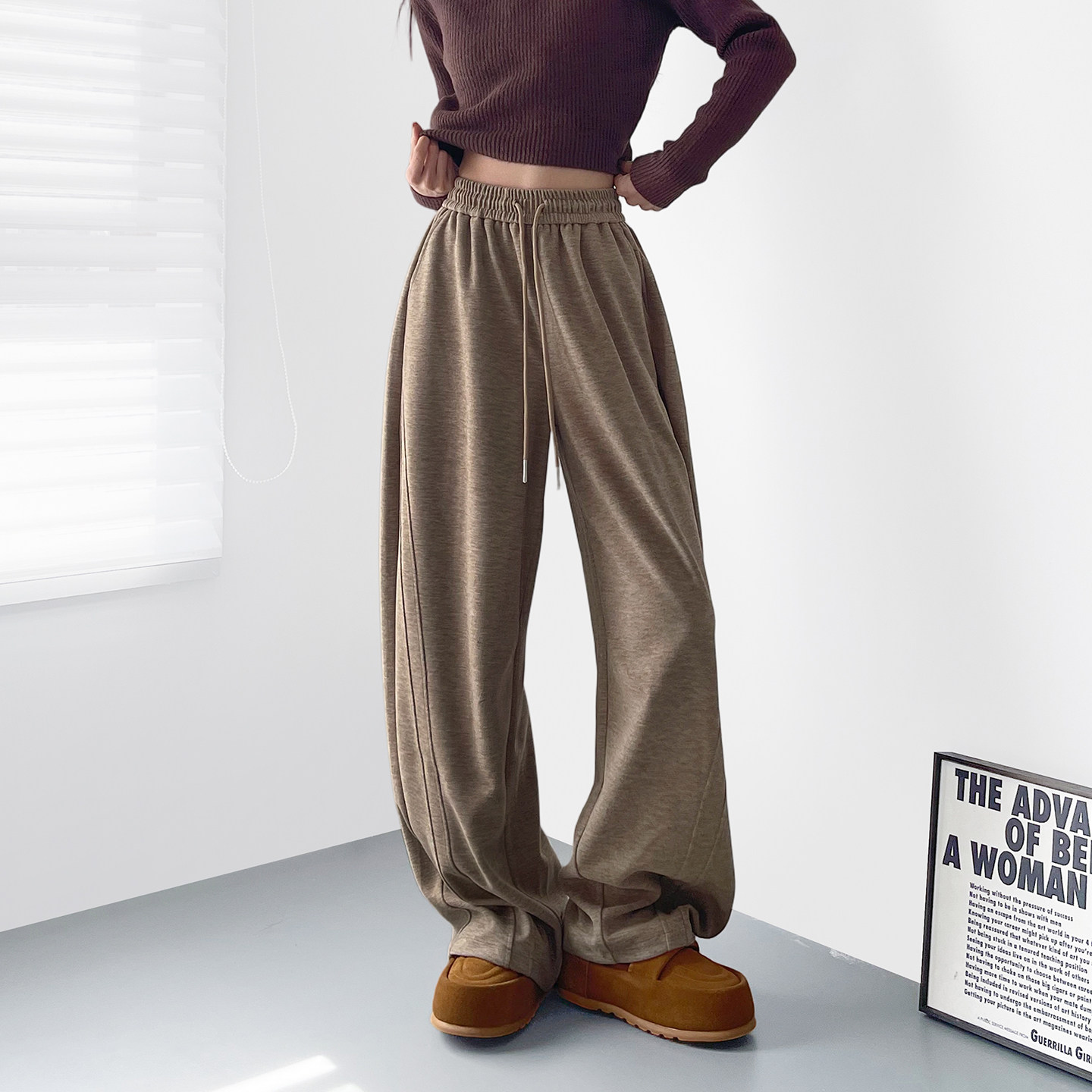 天花概念秋款新款亲肤舒适宽松版型直筒裤显瘦显高长裤纯色休闲裤女