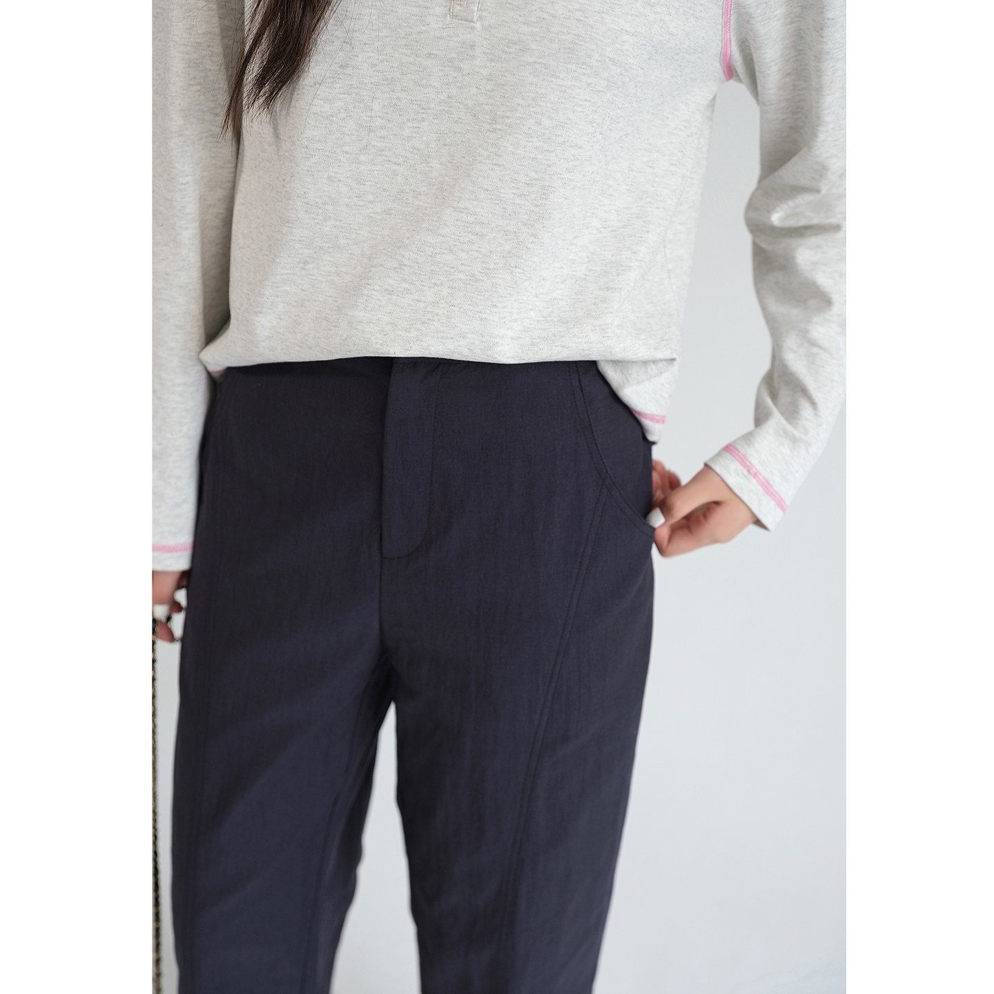 天花概念秋款新款亲肤舒适宽松版型直筒裤显瘦显高长裤纯色休闲裤女