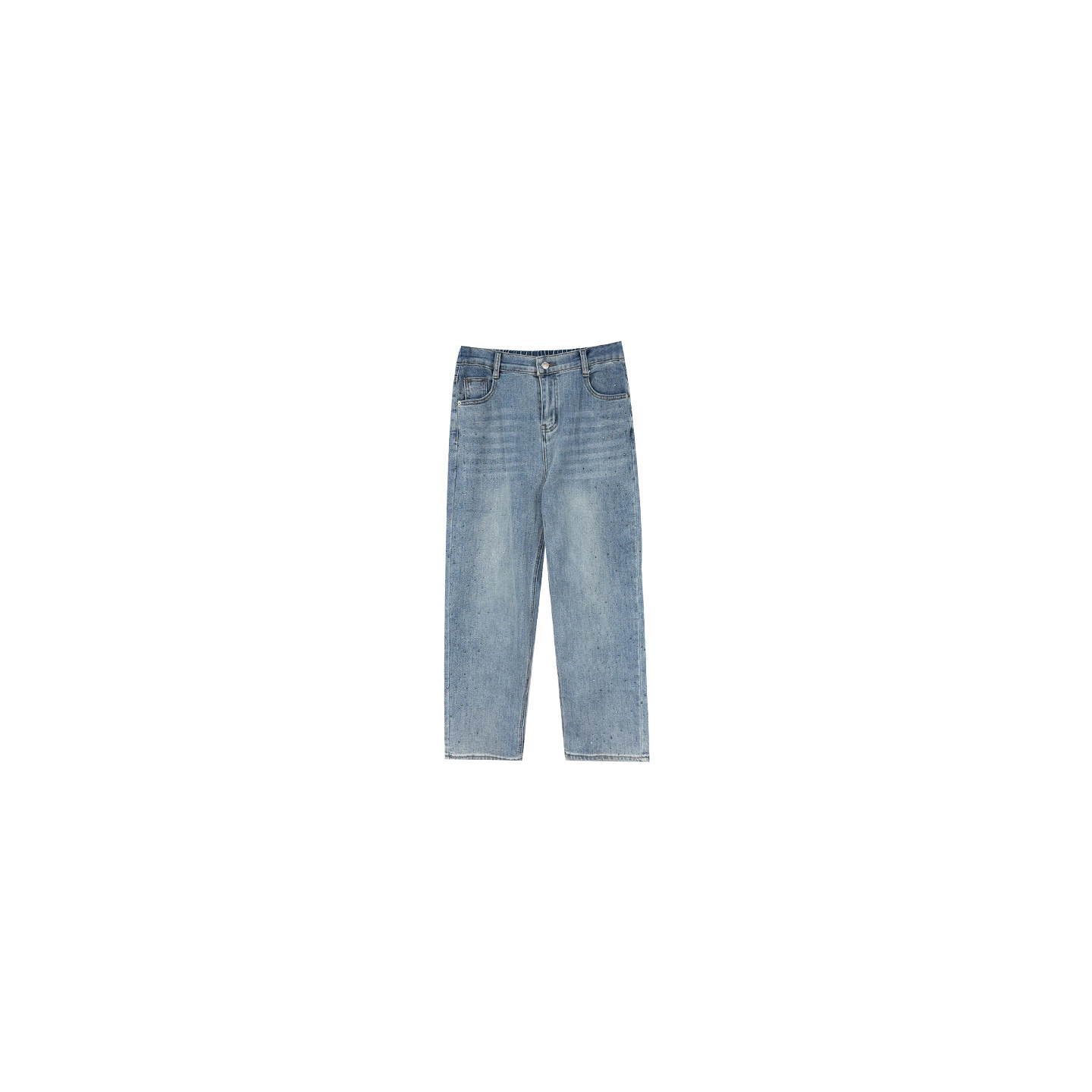 淘宝VOGANA戛纳家大码女装时髦bling满天星牛仔裤春显瘦弹力棉直筒裤