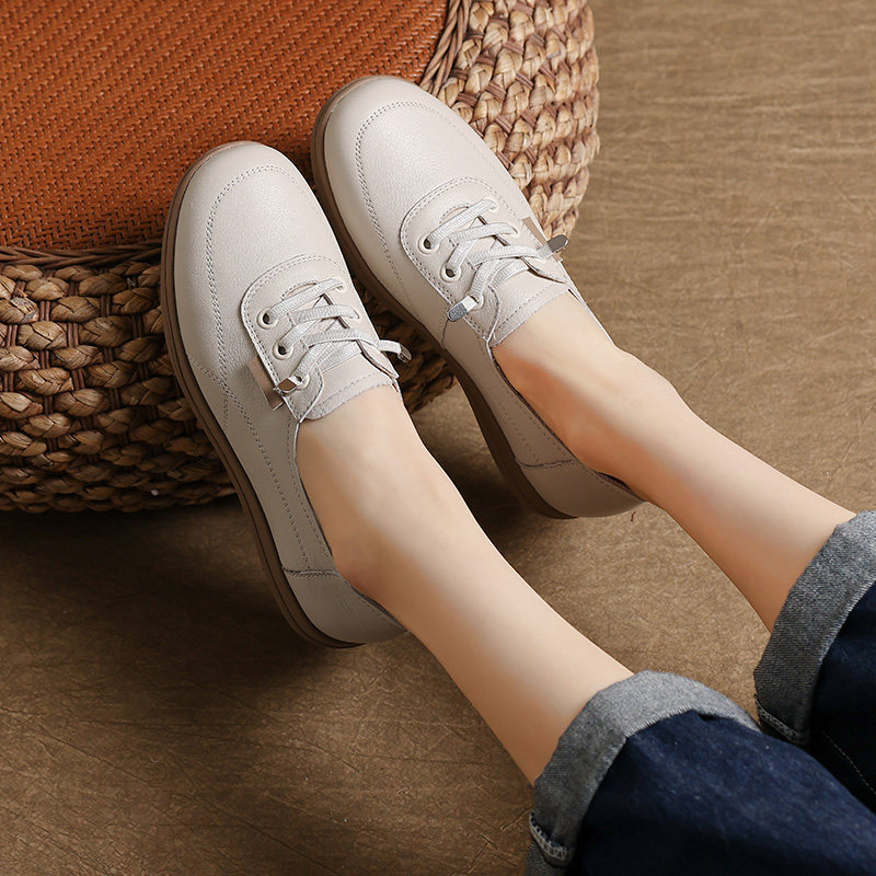 2026春秋新款头层牛皮女士小白鞋,采用优质头层牛皮打造,质感细腻、透气亲肤,彰显高级品味。一脚蹬懒人设计,穿脱便捷,适合快节奏生活。软底轻盈缓震,久走不累,兼顾舒适与时尚。简约纯白配色,百搭各类裙装裤装,轻松驾驭通勤、休闲等多种场合。专为成熟女性设计,兼顾妈妈群体的舒适需求,是送给母亲或自用的高性价比真皮单鞋。经典小白鞋造型历久弥新,2026新款在细节与工艺上全面升级,舒适耐穿,是春秋季的必备单品。