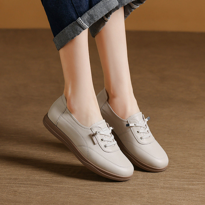 淘宝头层牛皮女士小白鞋2026春秋新款软底皮鞋懒人一脚蹬真皮妈妈单鞋