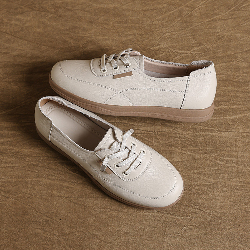 头层牛皮德训小白鞋女款百搭单鞋复古新款妈妈软底休闲运动板鞋女