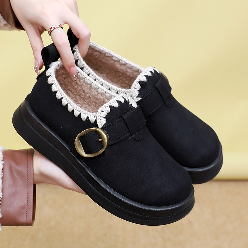 淘宝冬季新款加绒加厚底勃肯女乐福鞋老北京棉鞋一脚蹬保暖妈妈雪地靴