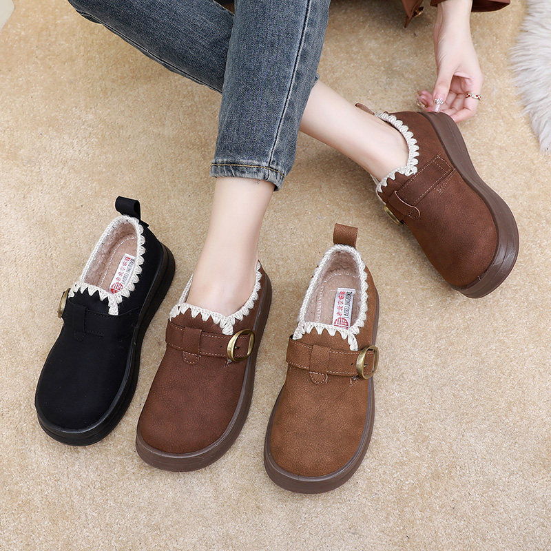 这款冬季新款加绒加厚底勃肯女乐福鞋,融合经典老北京棉鞋的舒适设计与现代时尚元素,专为注重保暖与实用的妈妈群体打造。采用优质绒里内里,柔软亲肤,锁温保暖,轻松应对严寒天气。一脚蹬设计穿脱便捷,加厚防滑大底提供稳固支撑,行走更安全。鞋面选用耐磨面料,简约乐福鞋型搭配勃肯风格细节,既复古又百搭,适合日常出行、雪地漫步等多种场景。无论是居家还是外出,都能带来全天候的温暖与舒适,是冬日里贴心又时尚的保暖之选。
