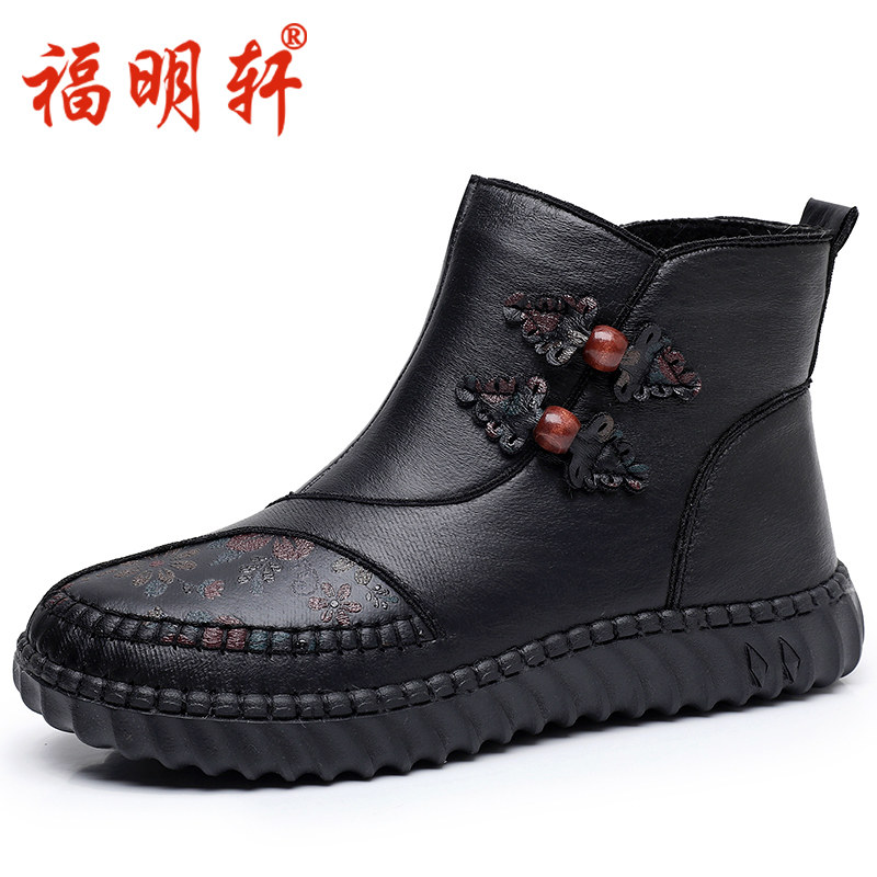 冬季妈妈短靴真皮中年大码女靴保暖羊毛平底软底中老年棉鞋