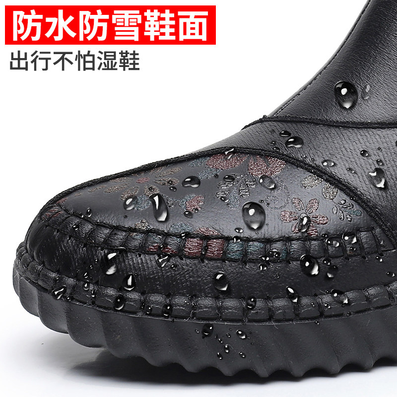 真皮加绒保暖雪地靴厚底防滑妈妈鞋棉鞋中年女士短靴2025冬季新款