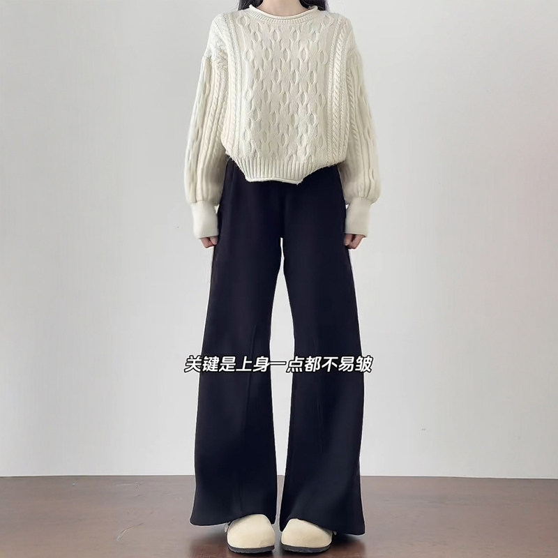 淘XFYSTYLE_加厚绒抽绳阔腿长裤女25冬季宽松显瘦保暖休闲运动卫裤