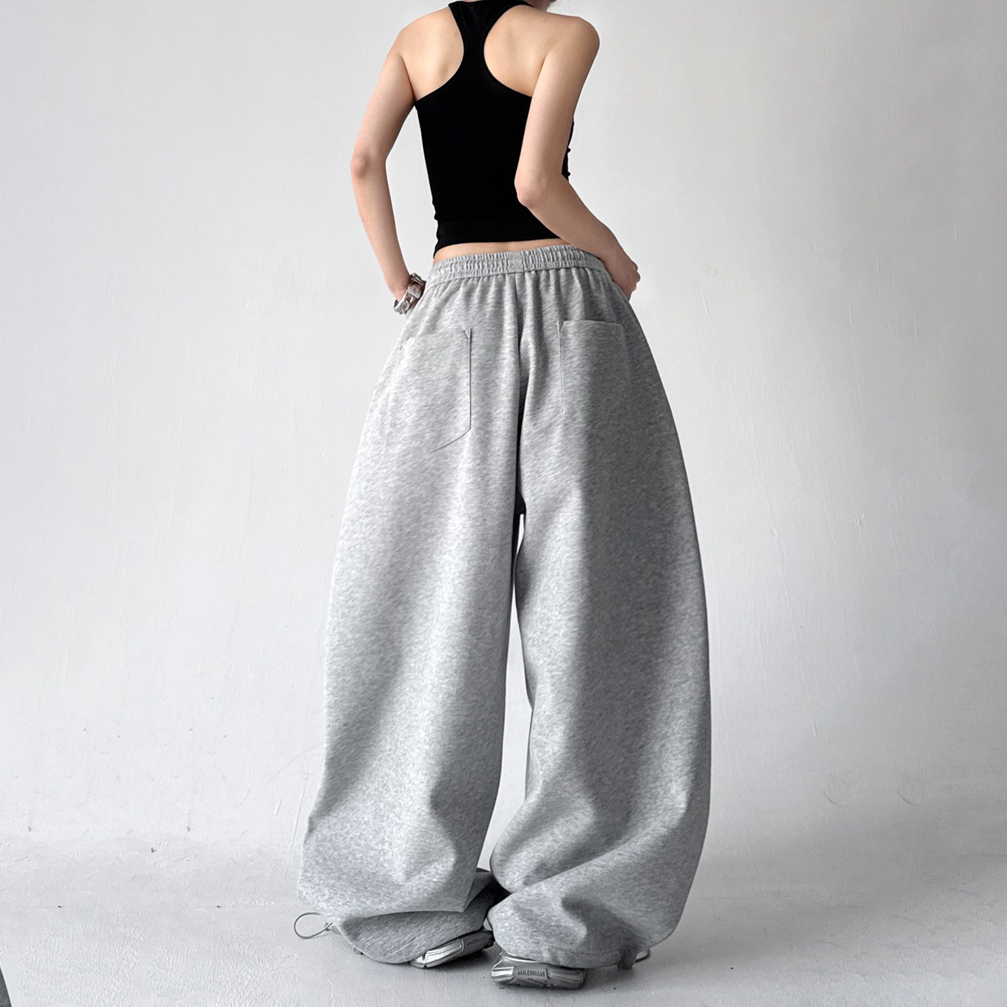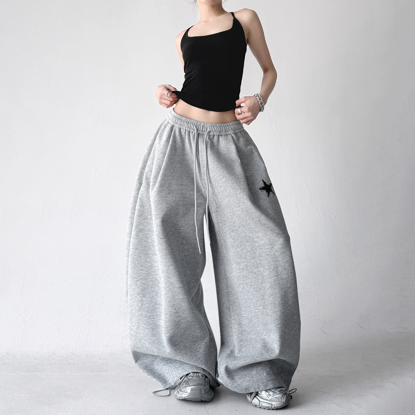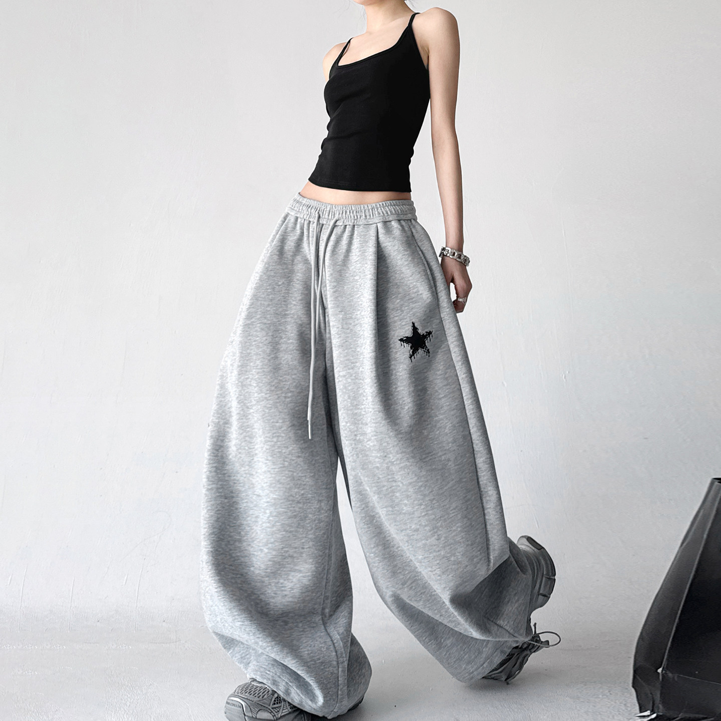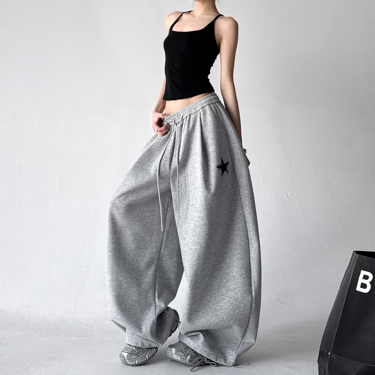 2026春季新款休闲运动风灰色卫裤,专为追求舒适与时尚的女性打造。采用高腰设计,有效拉长腿部线条,视觉显瘦;宽松直筒阔腿版型,包容各种身材,活动自如不束缚。精选优质棉质混纺面料,柔软透气,亲肤耐穿,适合日常出行、运动或居家休闲。简约灰色调百搭易穿,轻松搭配卫衣、T恤或短款上衣,展现随性慵懒又不失活力的春日气息。侧边条纹或品牌标识点缀,细节彰显品质。无论是通勤、逛街还是瑜伽健身,这条卫裤都能让你舒适自在,轻松演绎都市女性的时髦运动风。