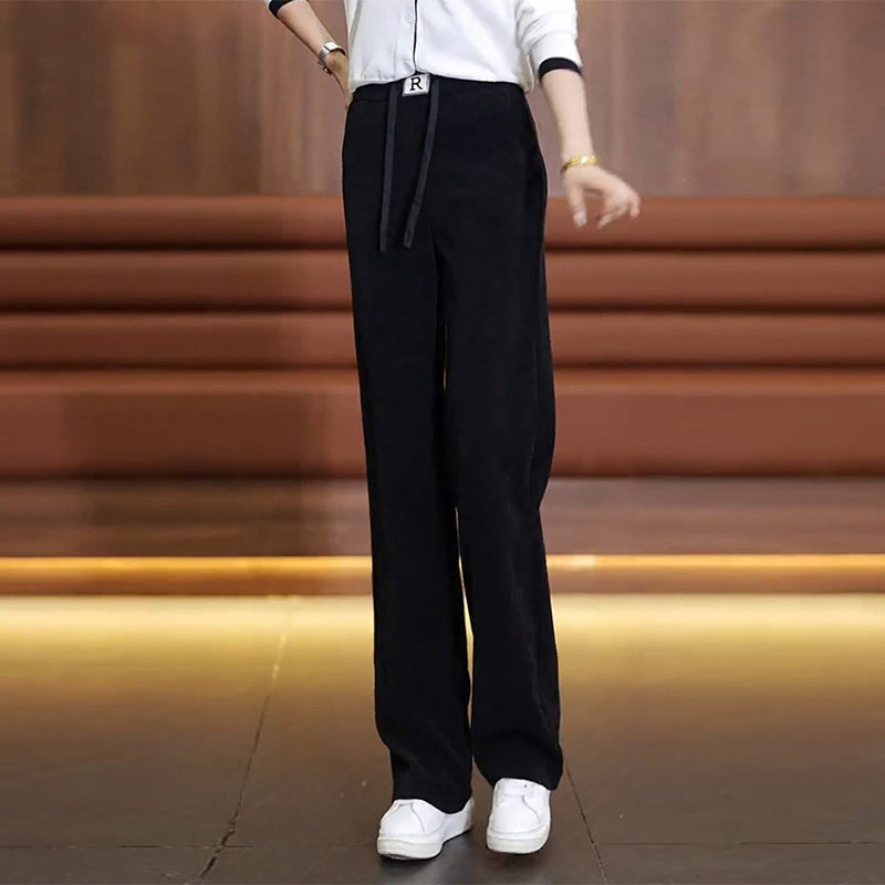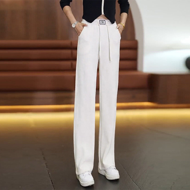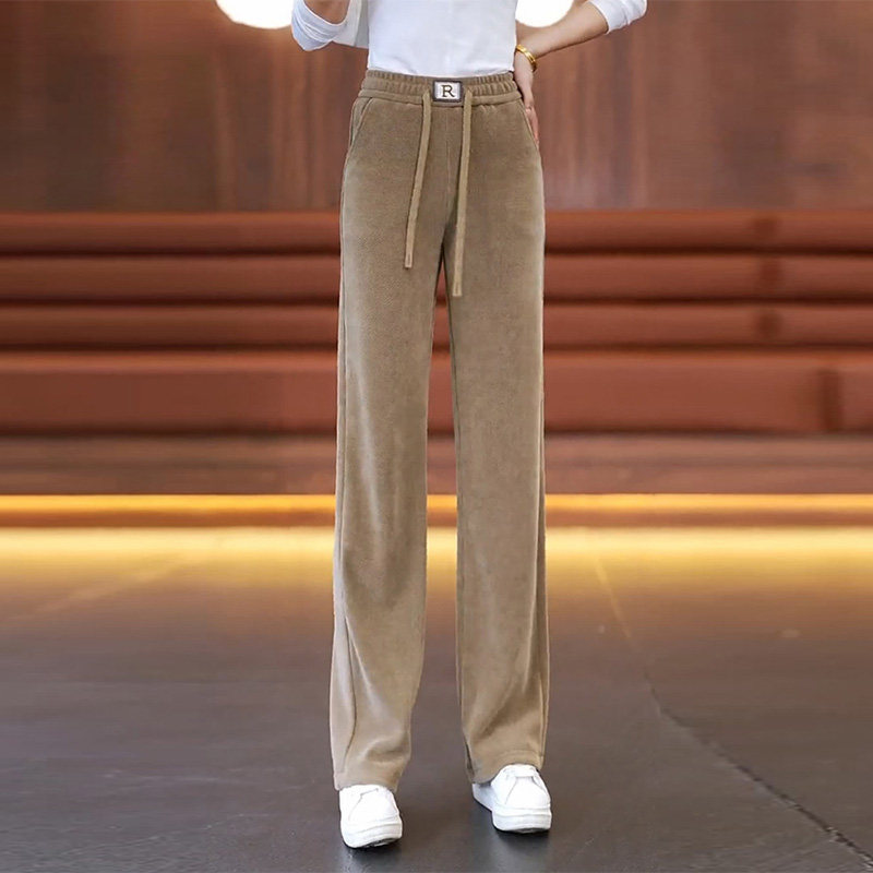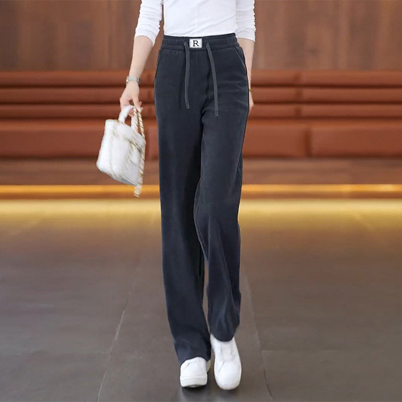 2025冬季直筒裤蕾丝休闲运动卫裤女士裤子阔腿裤冬款加绒长裤
