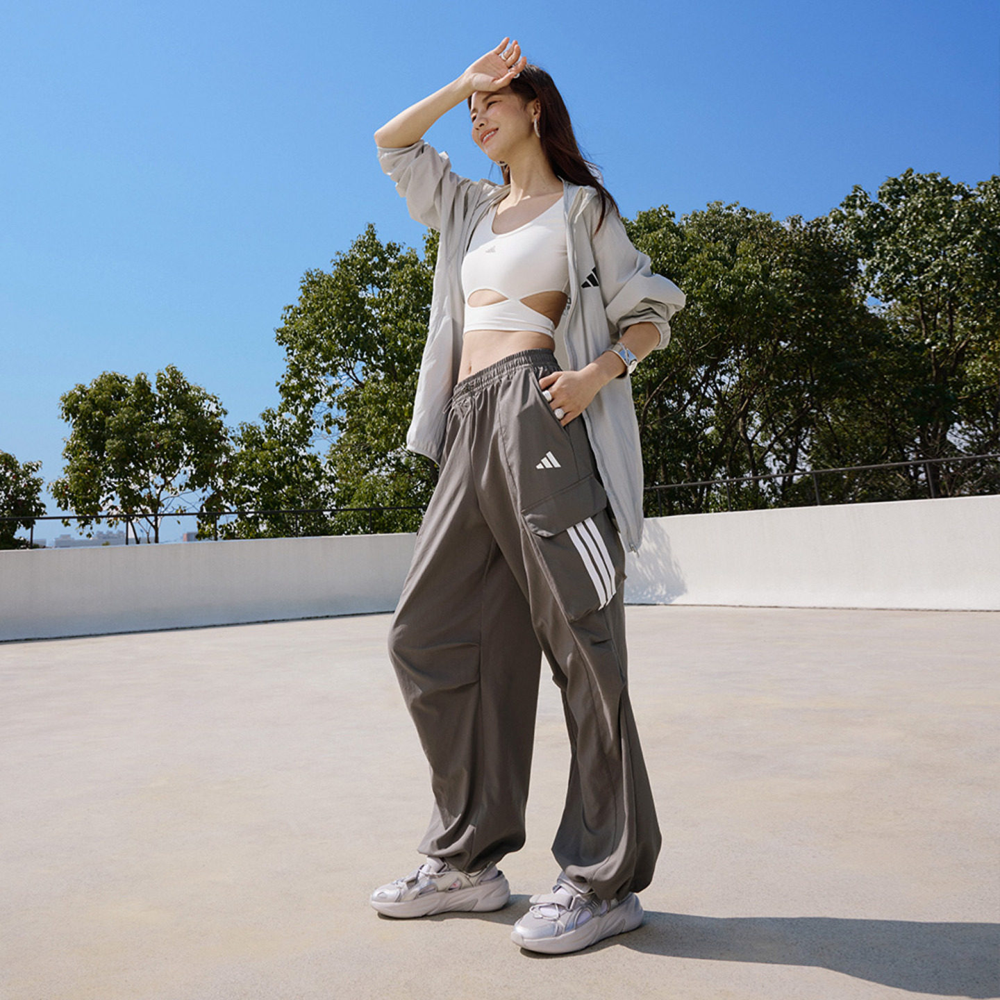 天猫速干防晒UPF50+宽松多口袋运动裤伞兵裤女装adidas阿迪达斯轻运动