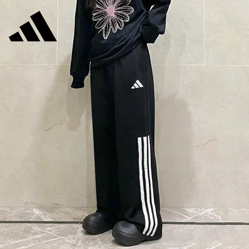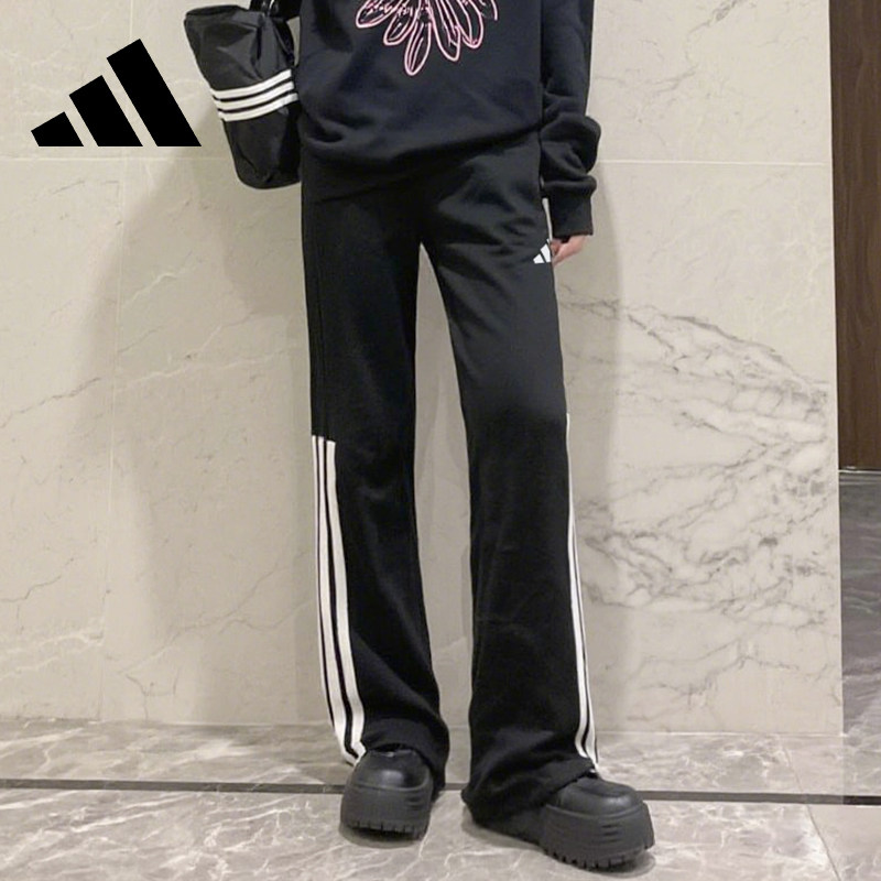 淘宝adidas阿迪达斯裤子女 经典三条杠运动休闲潮流宽松直筒长裤 正品
