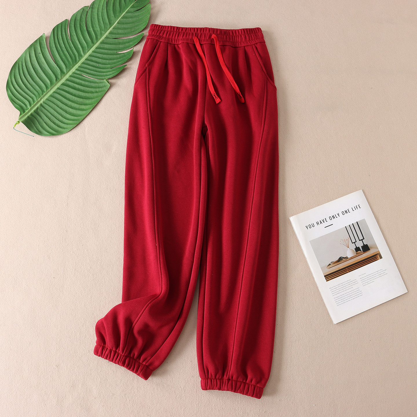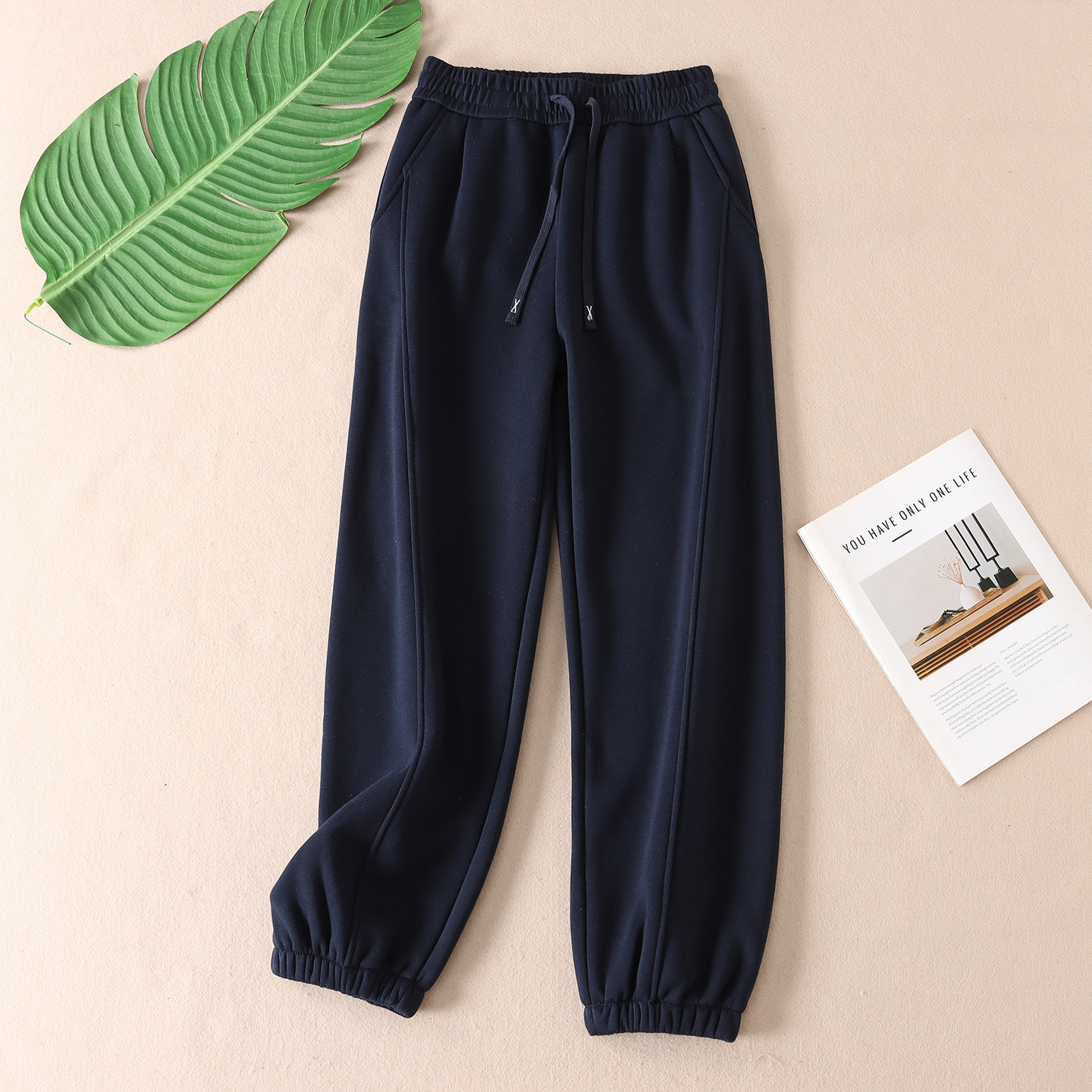 onrays|100%新疆长绒棉加绒加厚内里保暖卫裤女士窄脚运动裤