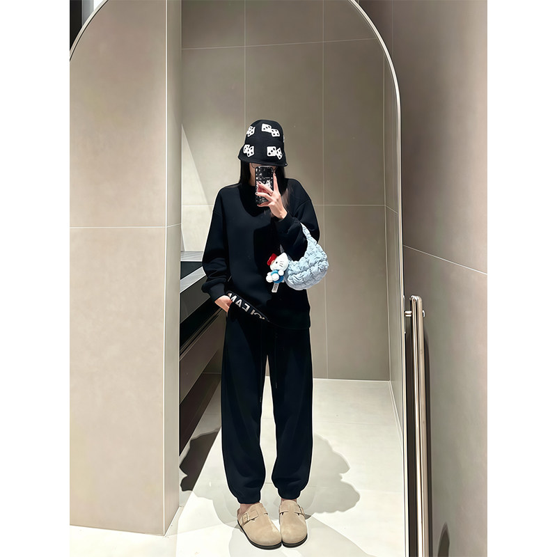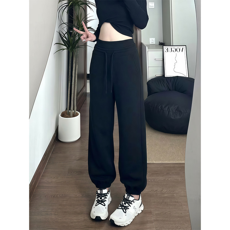 淘宝luqi lulu双层腰头scub直筒运动薄绒束脚长裤显瘦休闲百搭神裤女