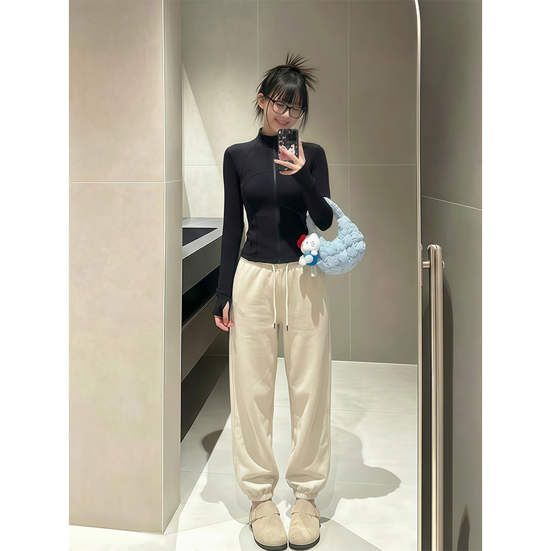 淘白色运动裤男女春秋冬款小个子2025新款宽松束脚灯笼休闲卫裤子