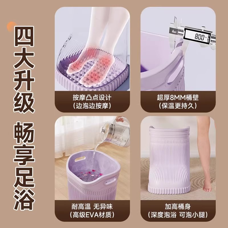 天里序泡脚桶家用高深洗脚盆养生神器可折叠便携式保温足浴桶女士