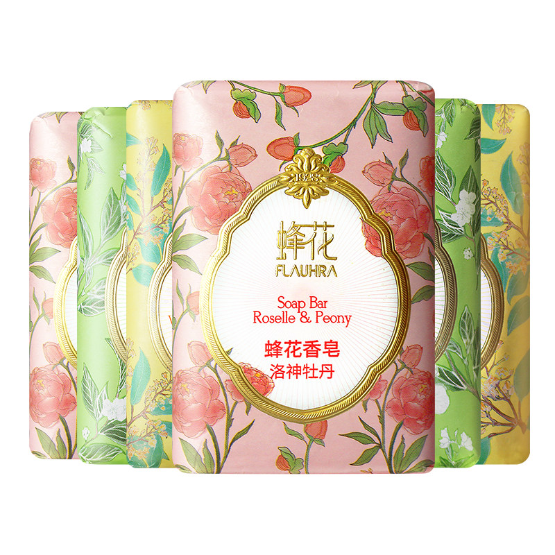 天猫FLAUHRA蜂花檀香皂125g*6块套装牡丹春茶檀香皂洗脸沐浴洗手香皂