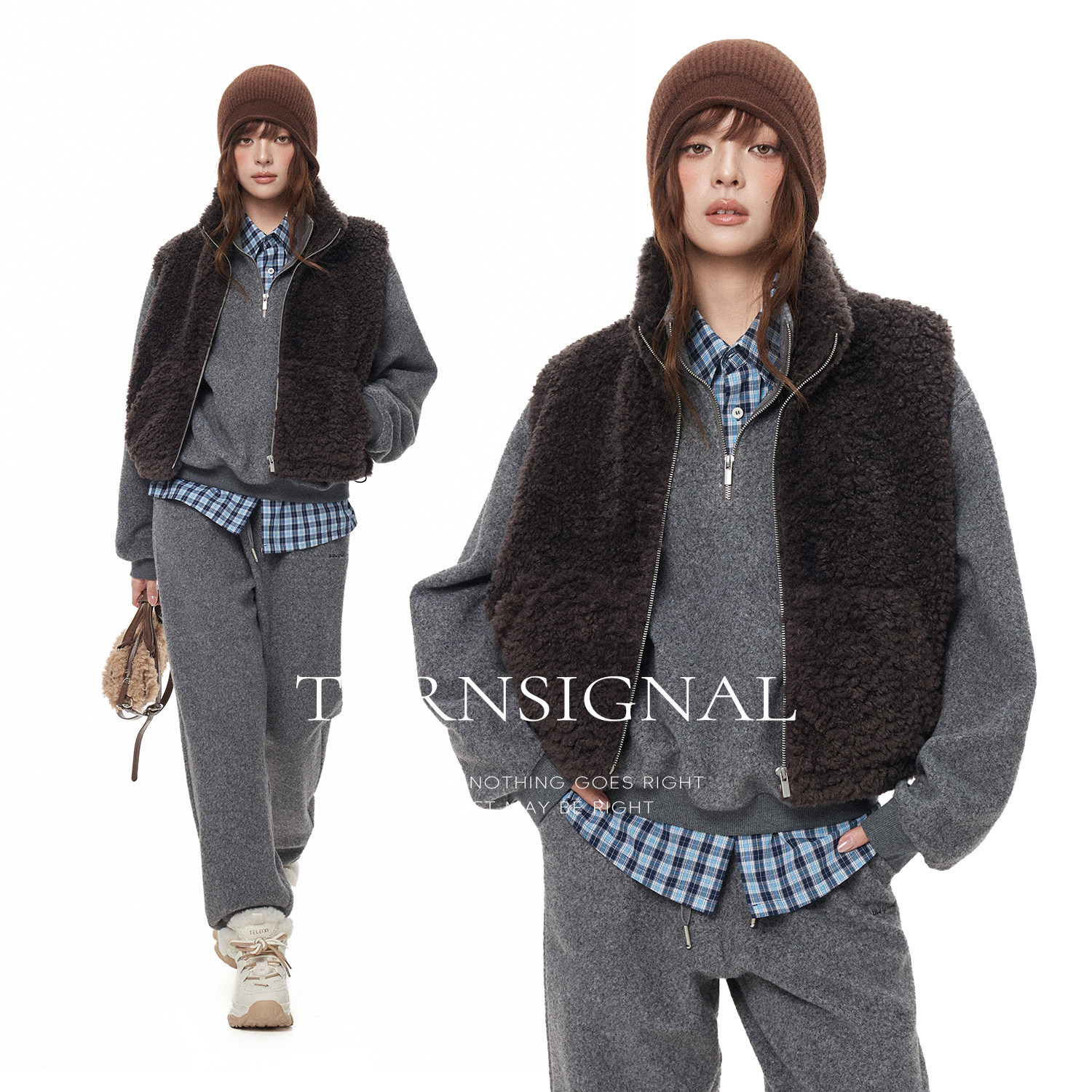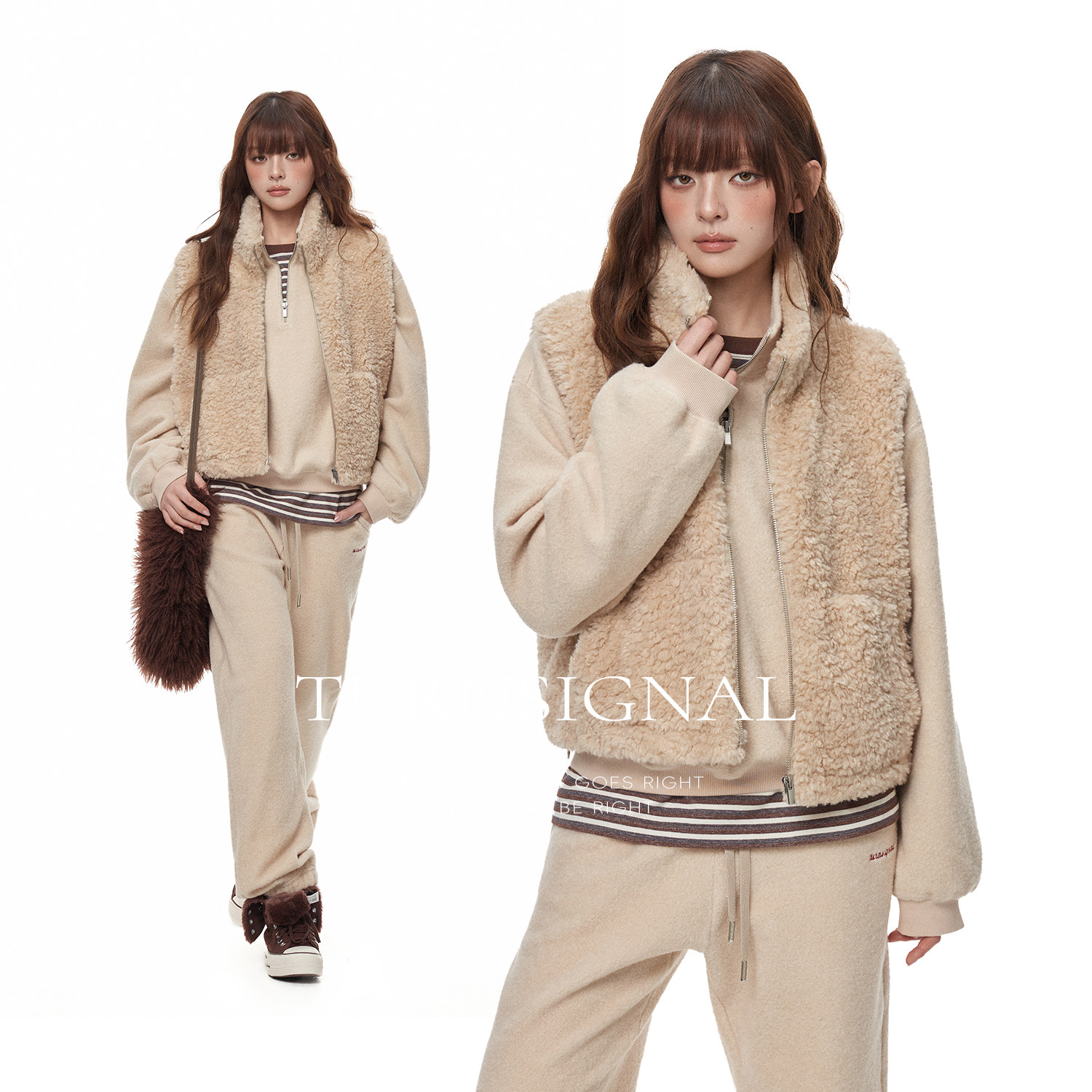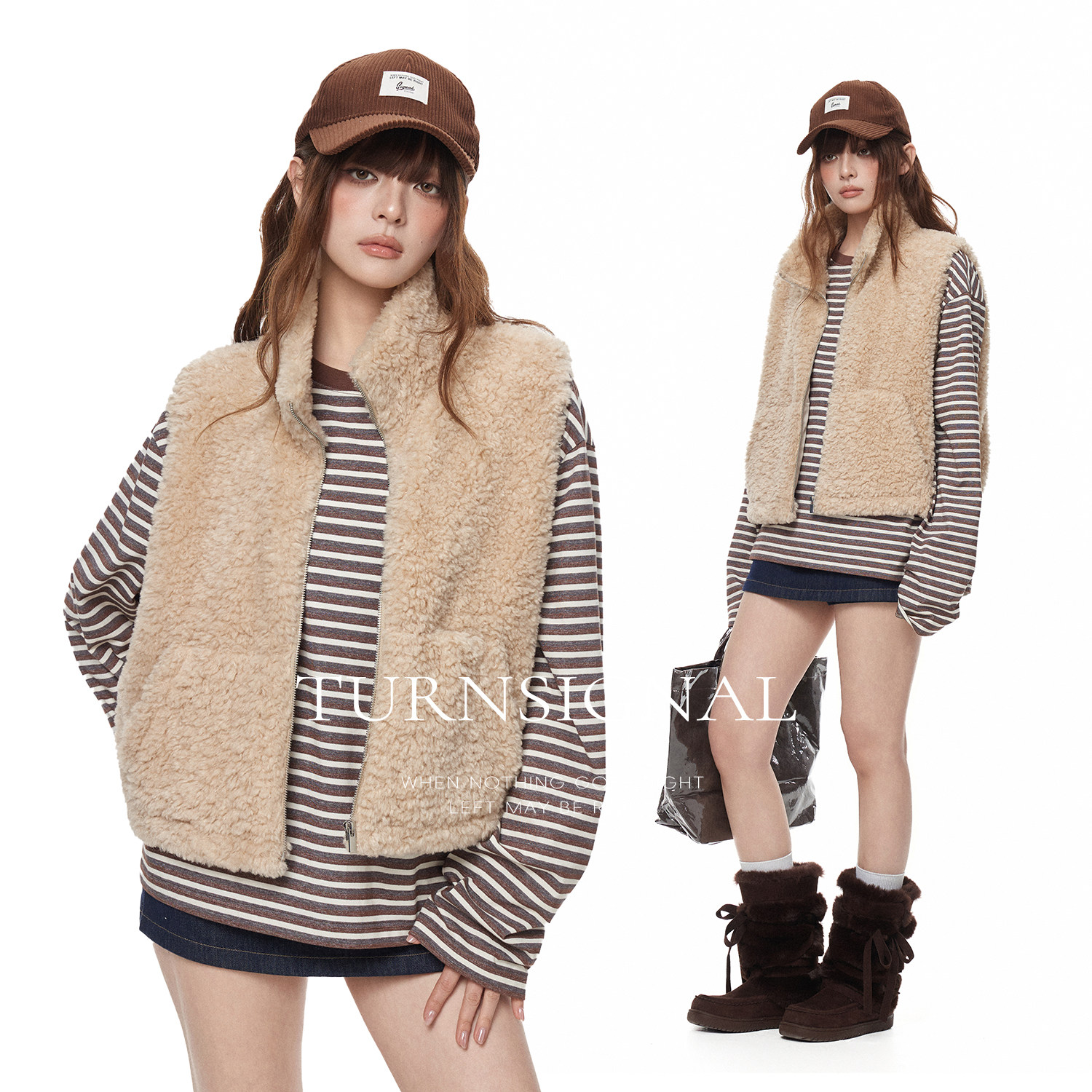 TurnSignal立领仿羊羔毛马甲,专为秋冬打造,兼顾保暖与时尚。采用柔软亲肤的仿羊羔毛材质,触感温暖细腻,宽松版型设计不挑身材,轻松实现叠穿搭配。立领剪裁提升颈部保暖性,同时增添干练气质,适合外穿或内搭于大衣、风衣之中。前襟隐形拉链设计简洁利落,侧边插袋兼顾实用与美观。无论是搭配毛衣、卫衣还是衬衫,都能轻松营造层次感,展现随性休闲的都市风格。多色可选,满足不同穿搭需求,是秋冬季节不可或缺的保暖时尚单品。