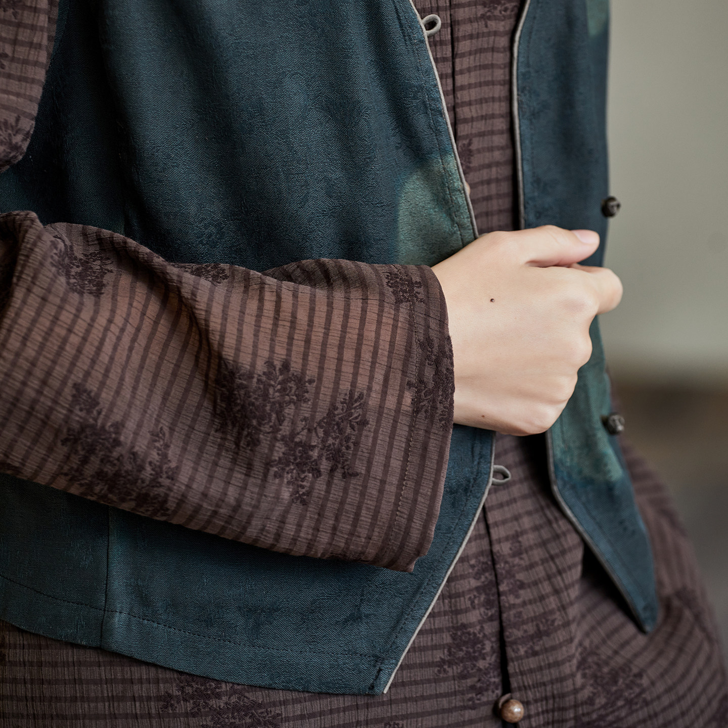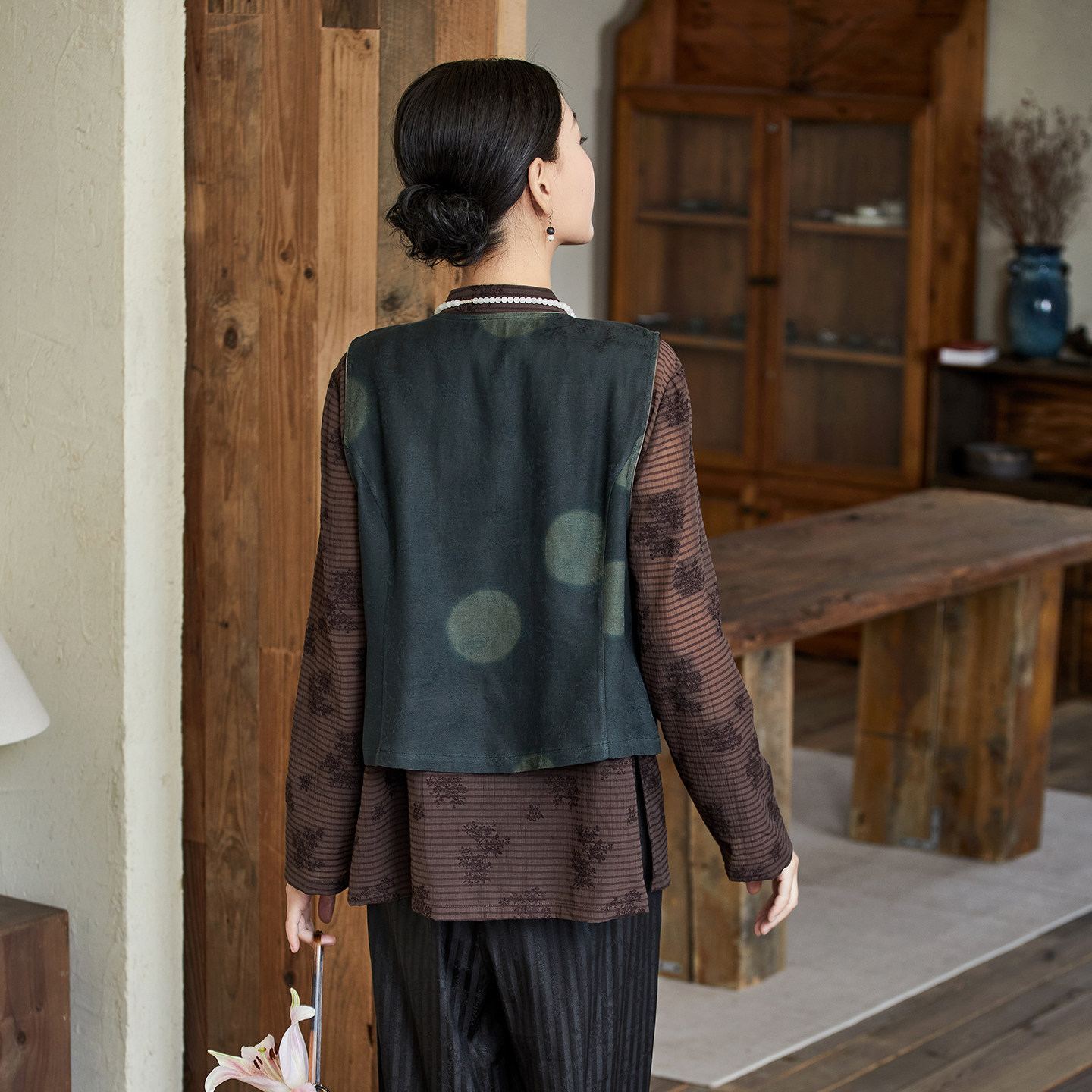 淘宝布小匠原创设计桑蚕丝绢纺提花香云纱马夹2026新款国风新中式马甲