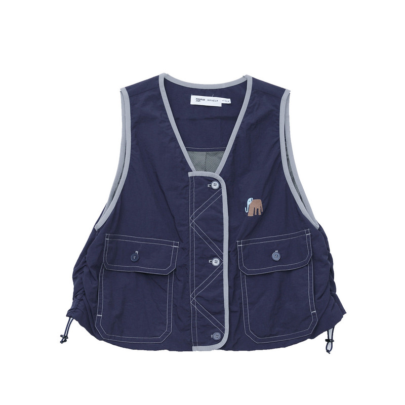 MOVEUP幻走2026春季新款.FUN系列V领绣花口袋工装风短款马夹女