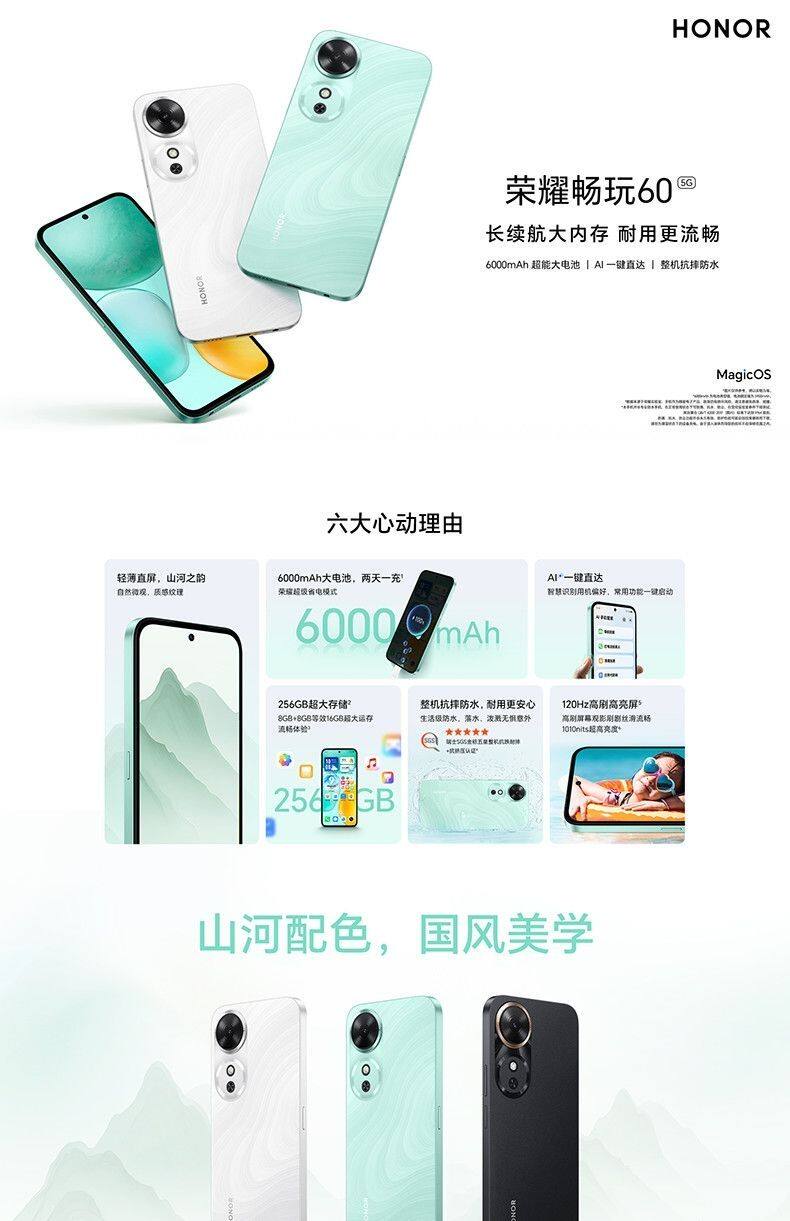 淘宝honor/荣耀 畅玩60 原装正品5G大电池Ai一键直达全网通拍照手机