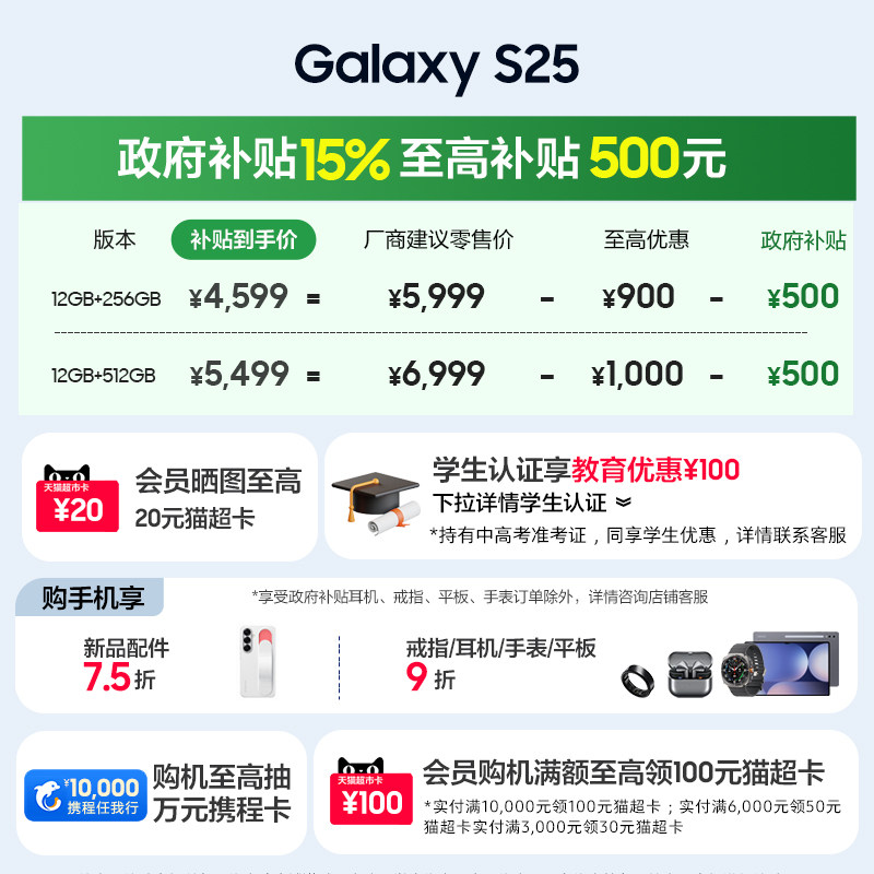 天猫【至高优惠1400元】Samsung/三星Galaxy S25全新拍照游戏超轻薄AI智能手机骁龙8至尊版