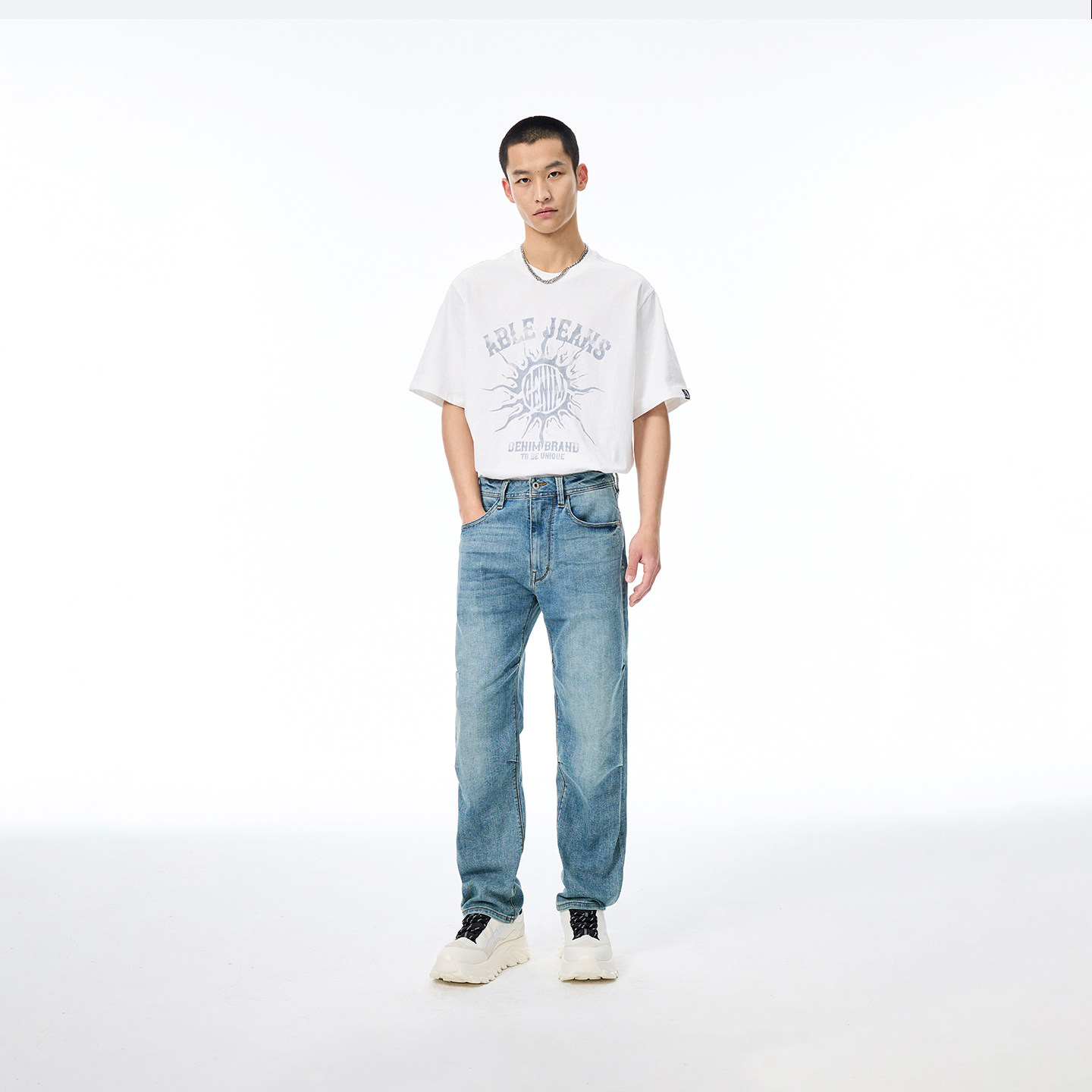 天猫ABLE JEANS【直筒滑板裤】男士百搭休闲长裤宽松黑色显瘦牛仔裤