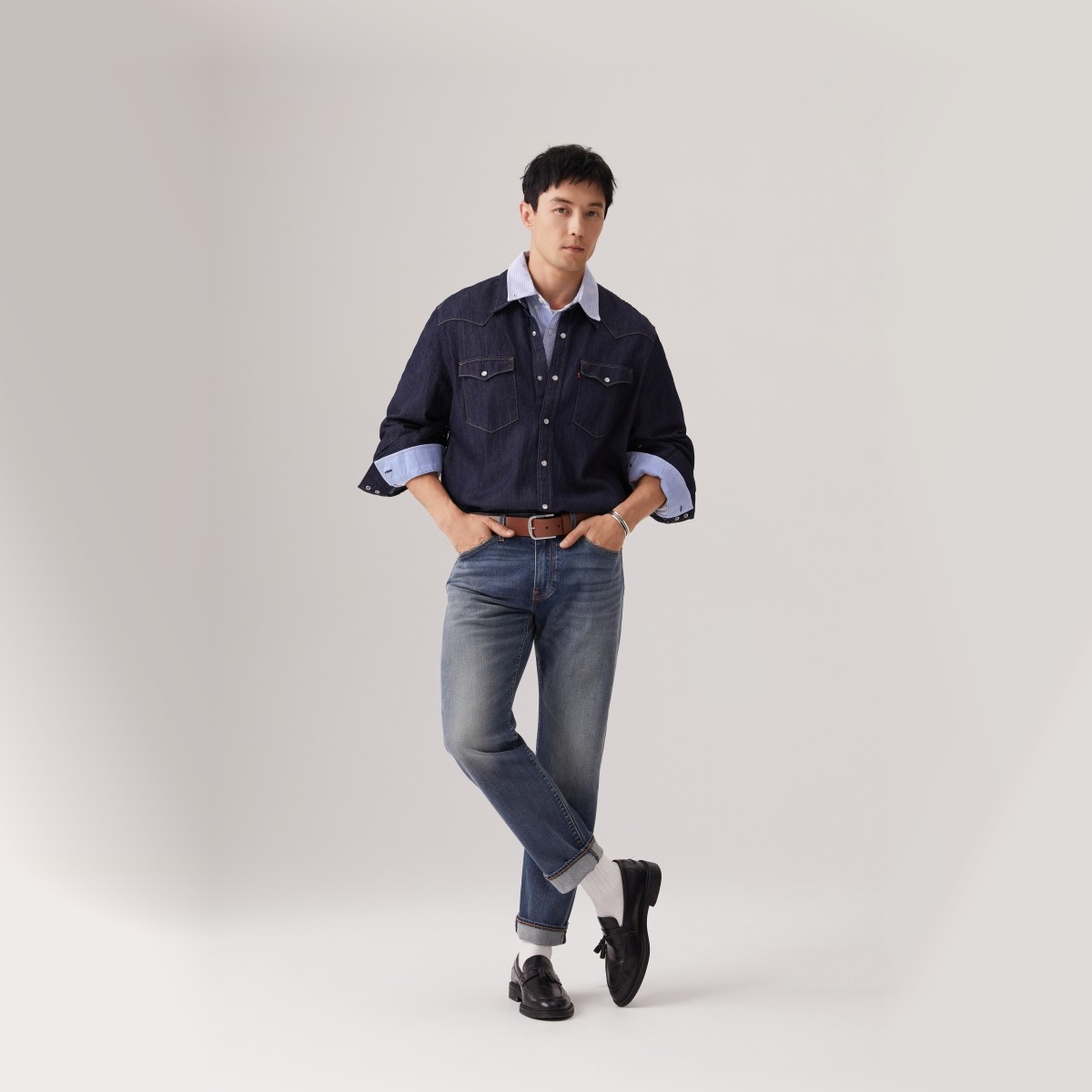 【商场同款】Levis李维斯男士502赤耳标准锥形复古牛仔裤(型号:29507),延续经典美式工装风格,采用优质赤耳丹宁布打造,布边细腻耐用,彰显复古质感。标准锥形剪裁贴合腿部线条,兼顾舒适与修身效果,适合日常通勤与休闲穿搭。高腰设计搭配五袋经典布局,实用且富有层次感。五金件精致耐用,水洗工艺自然做旧,呈现独特复古韵味。作为Levis经典系列之一,502兼具时尚与实穿性,是追求品质与风格的男士衣橱必备单品,轻松驾驭多种造型,展现随性不羁的街头态度。