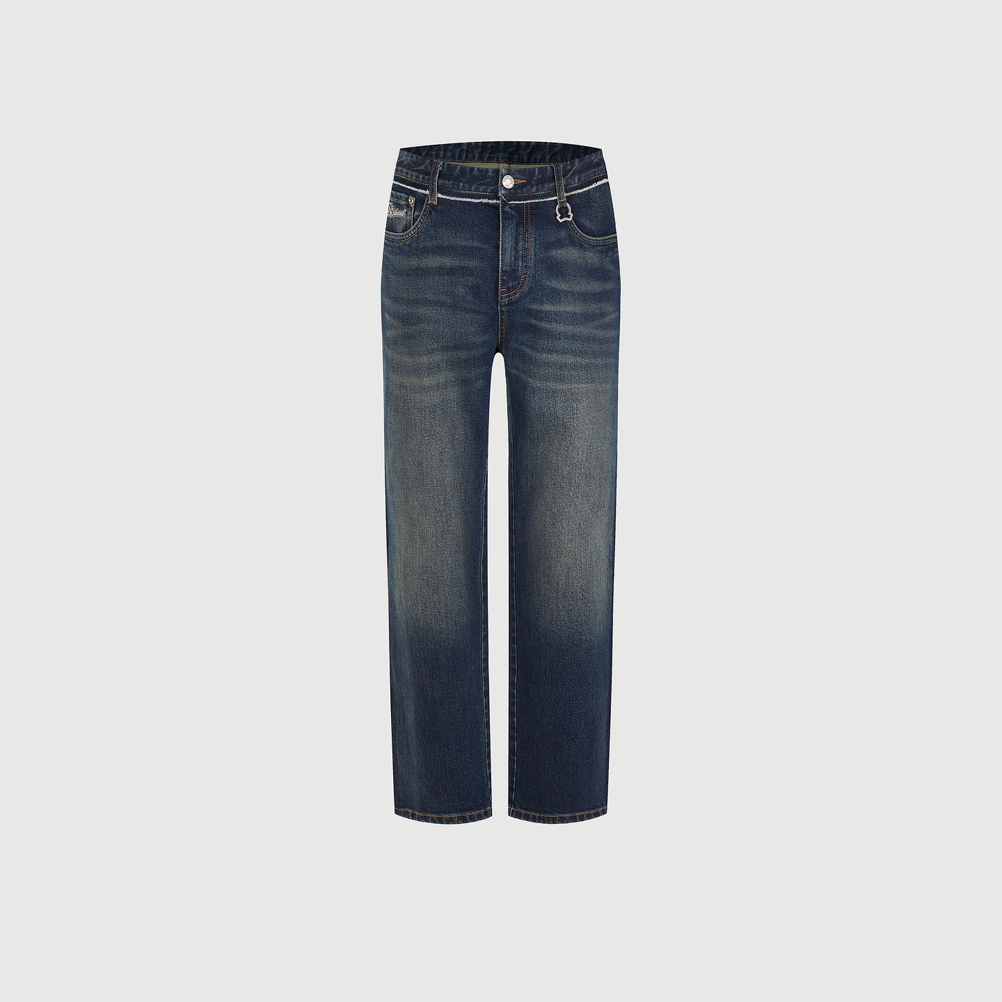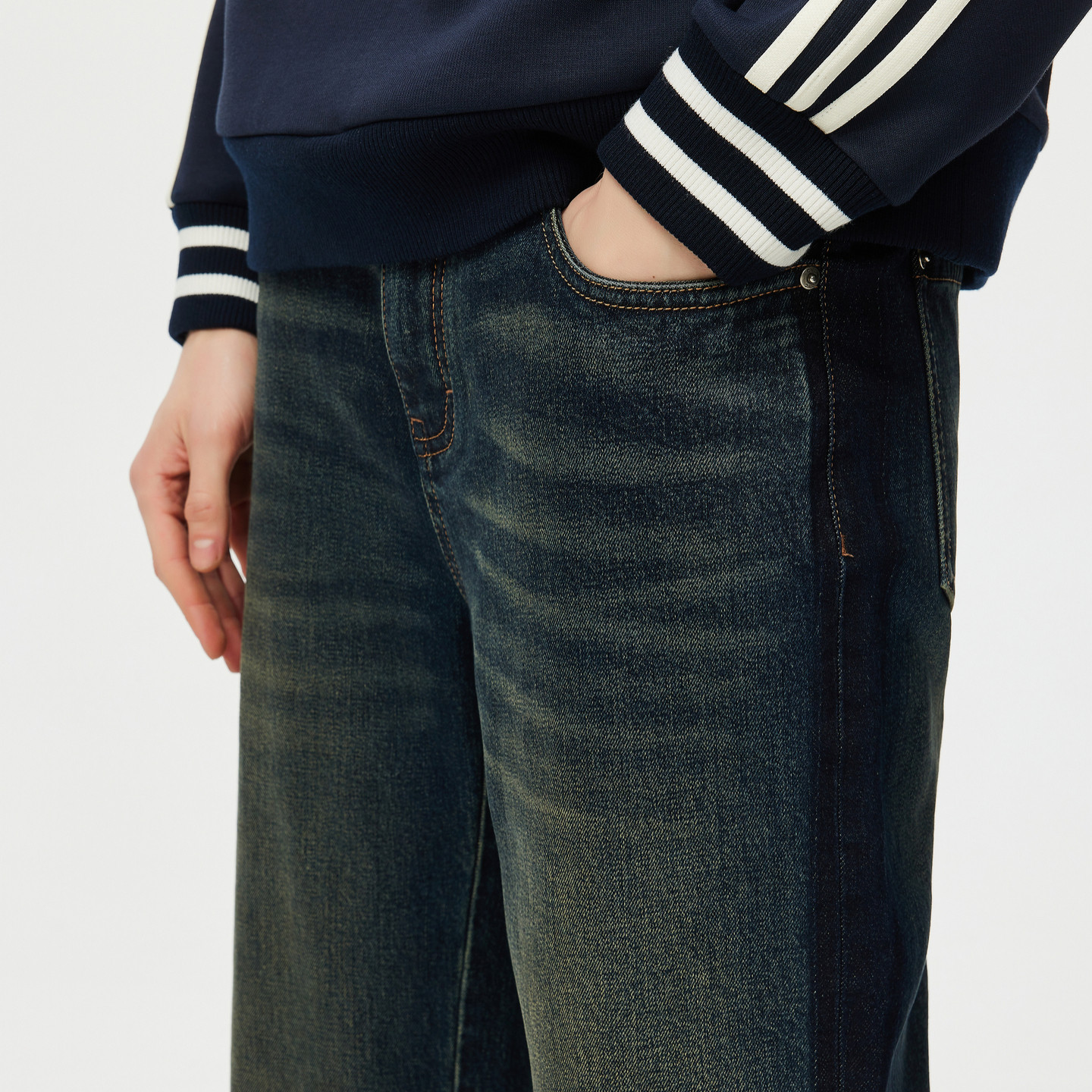 Entong美式潮牌cleanfit设计感牛仔裤男生宽松直筒百搭休闲长裤子