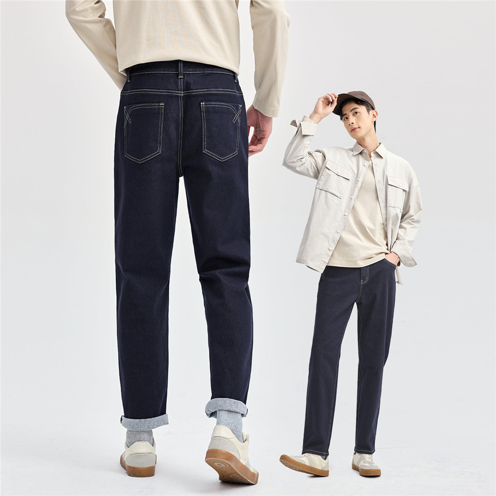 天百斯盾官方男装牛仔裤25年秋冬新款保暖云感棉舒适通勤中直筒长裤