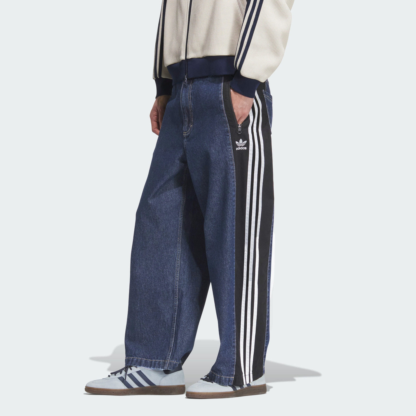adidas官方Outlets推出的三叶草系列男装牛仔运动裤,融合经典运动风格与休闲时尚。采用宽松剪裁设计,穿着舒适自在,适合日常出行或轻度运动。精选优质牛仔面料,兼具挺括感与柔软度,提升整体质感。侧边经典三叶草条纹装饰,彰显品牌辨识度,简约中不失潮流气息。高腰束绳设计,贴合身形又便于调节松紧。多口袋实用布局,兼顾美观与功能性。无论是搭配T恤、卫衣还是运动鞋,都能轻松打造街头休闲造型,是追求舒适与时尚并重的男士理想之选。