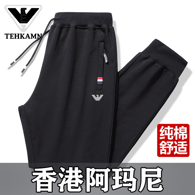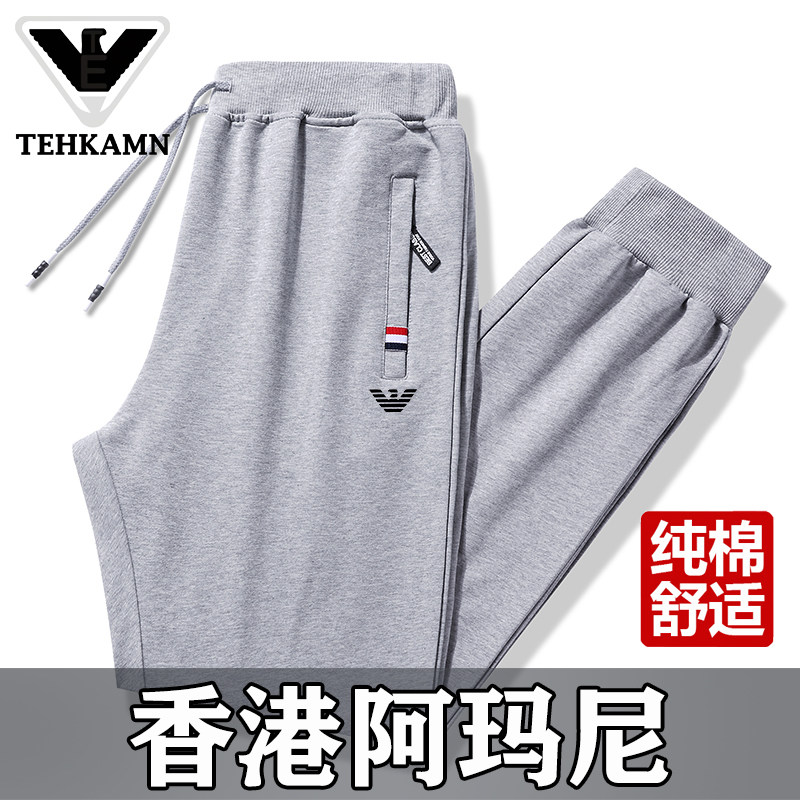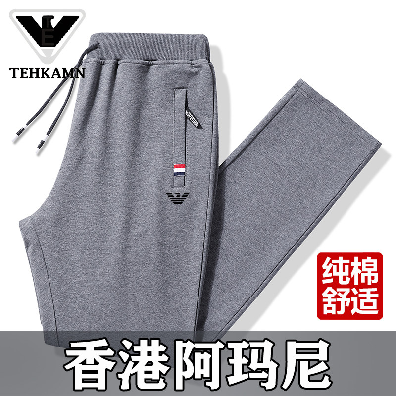 淘宝AMN品牌纯棉运动休闲裤男秋冬天新款爸爸宽松大码直筒束脚长裤子