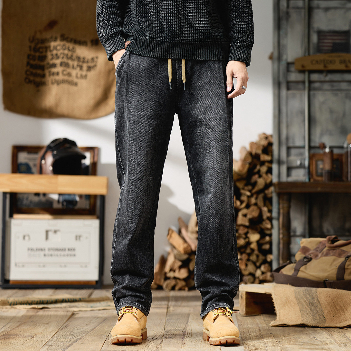 淘HMN Studio日系复古水洗做旧工装裤百搭宽松直筒阔腿休闲裤男
