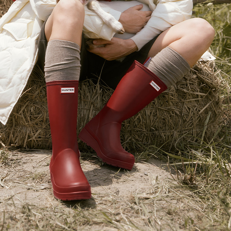 天猫HUNTER女鞋户外露营雨鞋哑光酷玩防水中筒靴厚底增高雨靴中筒靴女