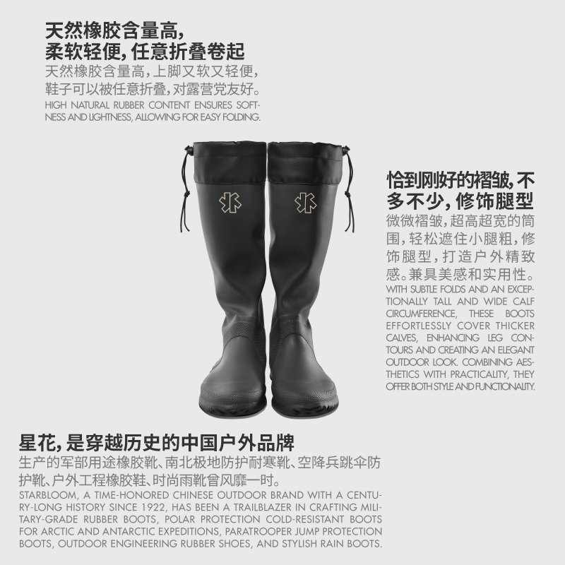 这款胡可推荐的星花软雨鞋是理想的户外防水鞋选择。它采用时尚胶鞋设计,轻盈又耐用。高筒设计保护脚部免受水溅湿和泥浆侵扰,同时舒适轻便的设计让穿着者行走自如。这款雨鞋专为女性打造,兼具钓鱼和户外活动的适用性。鞋面精致,颜色鲜艳,潮流时尚,适合各种场合穿着。无论是钓鱼、徒步旅行还是日常穿着,这款雨鞋都是您时尚与实用兼备的理想选择。轻便的鞋底,贴合地面又耐磨,为您的户外活动提供完美的体验。胡可力荐这款鞋作为时尚女性的必备之选。