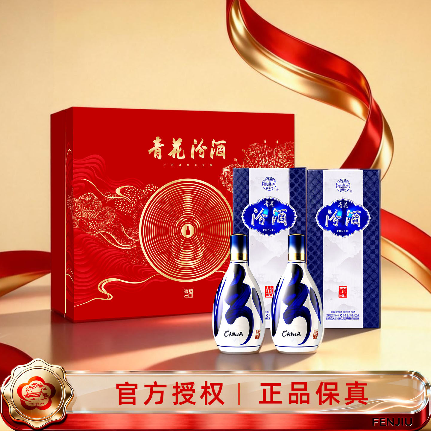 天猫官方山西杏花村酒53度汾酒青花20 500ml*2瓶礼盒装白酒送礼