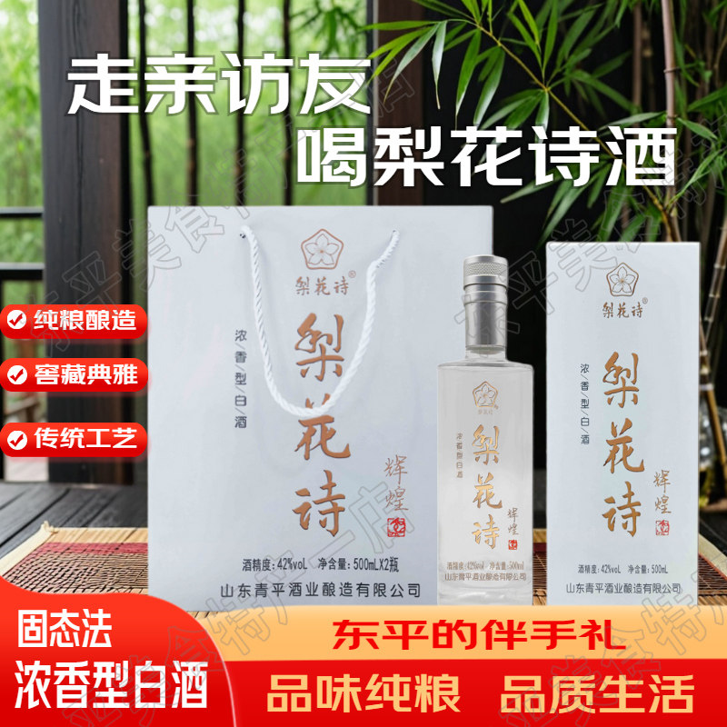 淘宝梨花诗浓香型纯粮食白酒42度500ml*2瓶口粮酒东平特产送礼