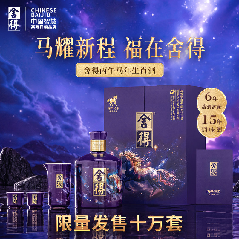 【顺丰】舍得马年生肖酒,54度浓香型白酒,精选优质高粱、小麦等五谷原粮,秉承传统固态发酵工艺,经长期陶坛储存,酒体醇厚、香气浓郁、回味悠长。518ml大容量礼盒装,专为马年生肖设计,瓶身融合生肖图腾与舍得文化,寓意“马到成功、舍得有福”,兼具饮用与收藏价值。外盒采用高档材质,典雅大气,彰显尊贵品位。无论是春节送礼、商务馈赠,还是自饮收藏,皆为上乘之选。顺丰直发,保障正品,安全快捷,是传递情谊、表达心意的理想年货佳酿。