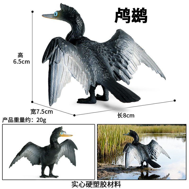 淘宝仿真动物模型鸬鹚鱼鹰水老鸦食鱼游禽鸟类儿童实心塑胶玩具摆件