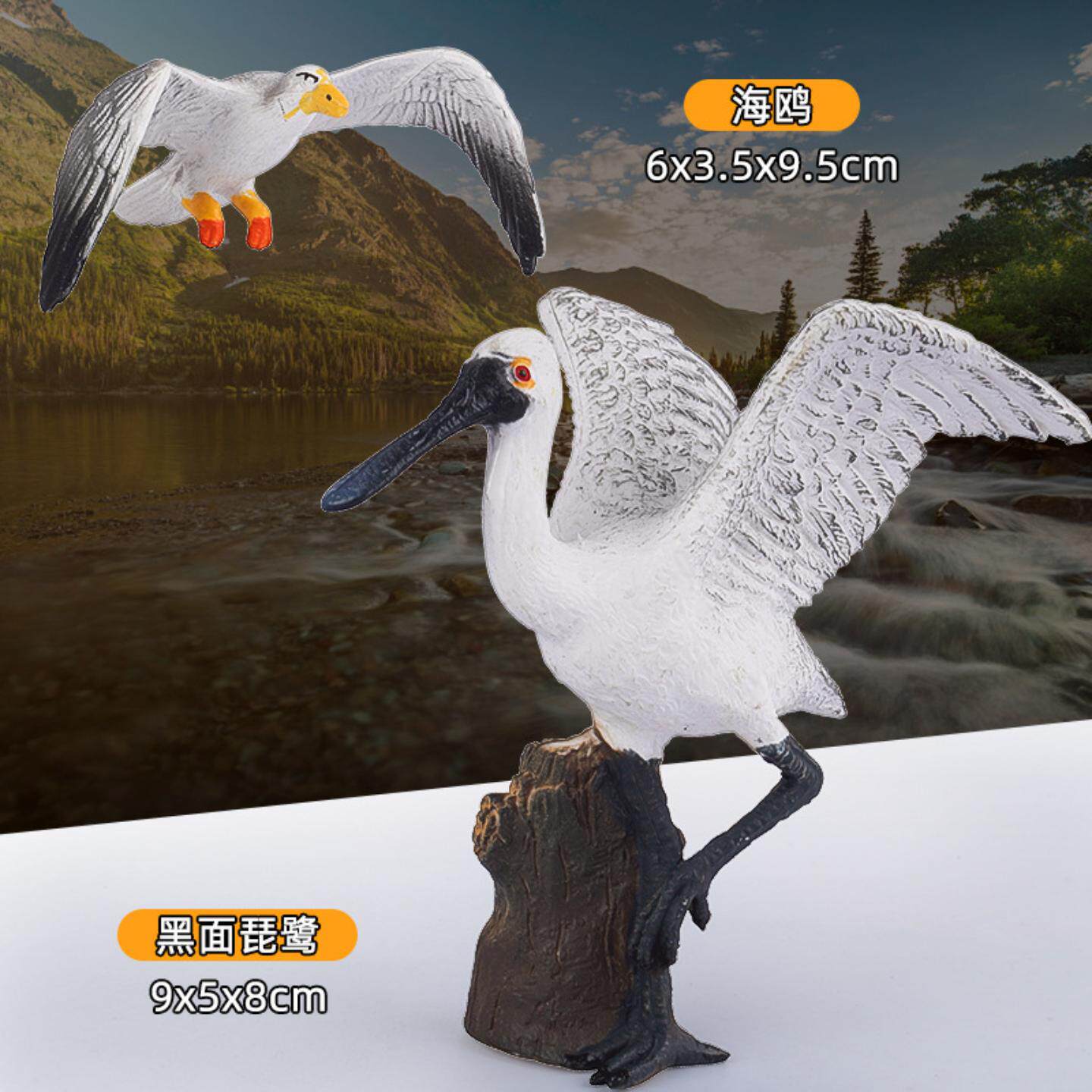 淘儿童仿真动物实心鸟类模型塑胶玩具黑面瑟鹭饭匙鸟琵琶嘴鹭摆件