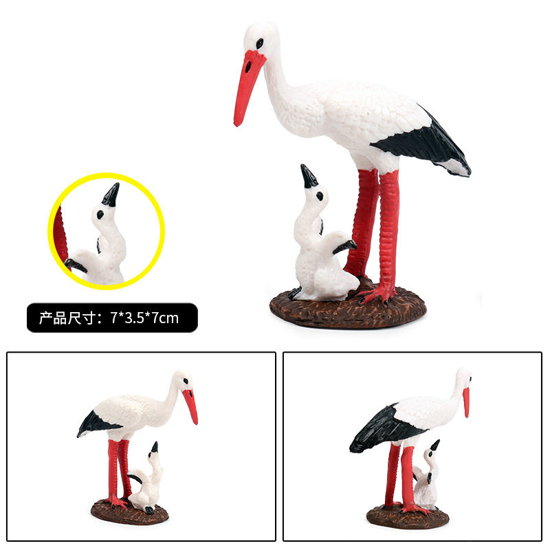 淘宝儿童仿真野生动物模型飞禽鸟类 白鹳母子 红鹤 仙鹤模型玩具摆件