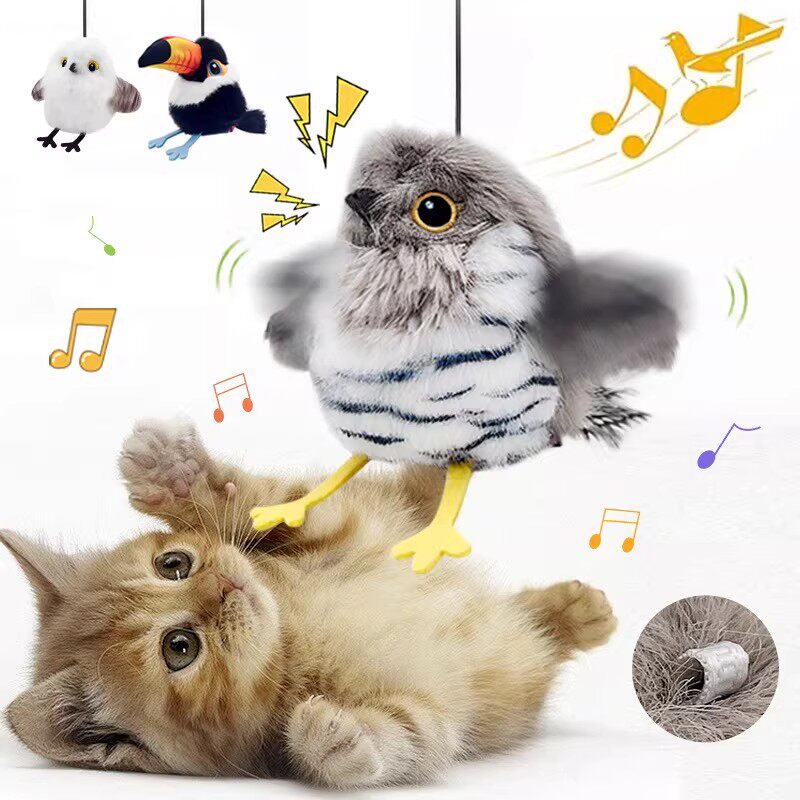 淘宝鸟类扑腾小肥啾猫咪自嗨解闷玩具仿真小鸟自动逗猫棒消耗体力趣味