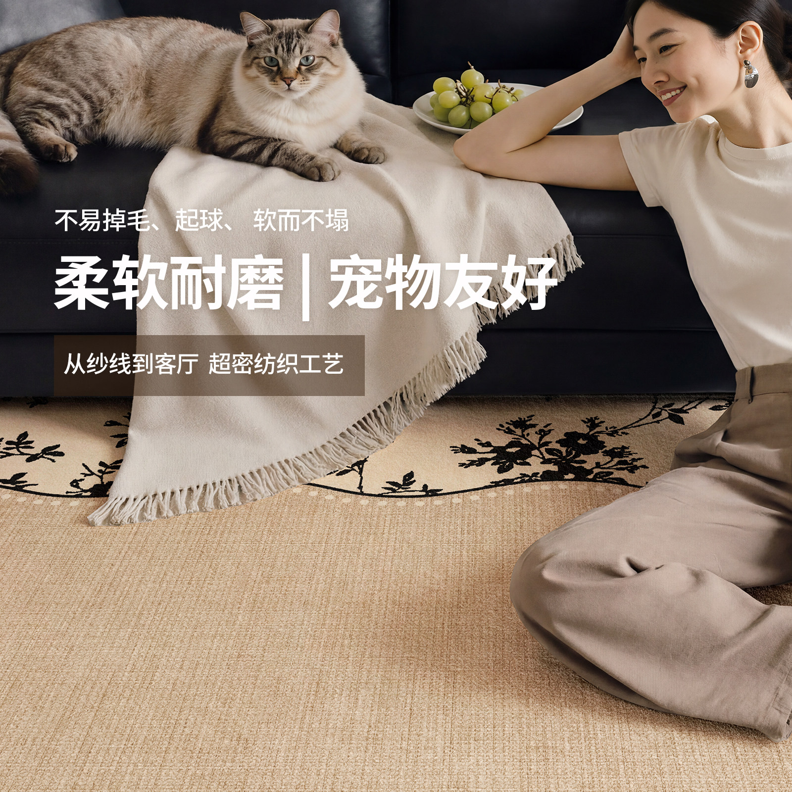 天猫地毯客厅复古中古风2026新款法式免洗可擦防水防污沙发高级感地垫