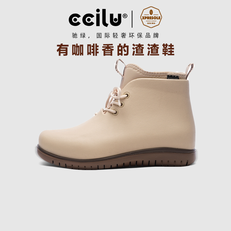 天猫ccilu驰绿渣渣鞋XPRESOLE咖啡渣雨靴雨鞋水鞋男女瘦瘦靴马丁靴