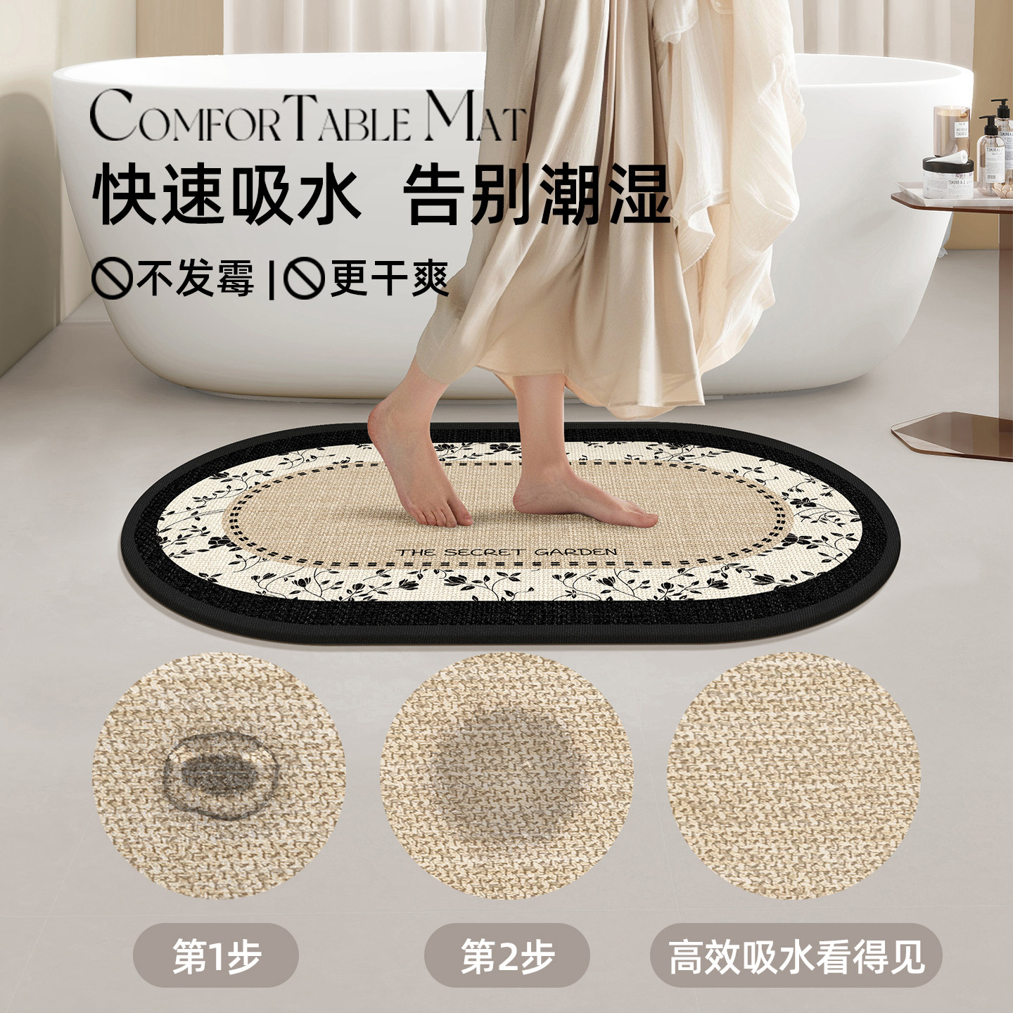 这款家用浴室地垫采用天然硅藻泥材质,具备超强吸水性能,脚踩瞬间即可快速吸收水分,保持地面干爽。表面防滑纹理设计,有效提升摩擦力,即使在湿滑环境中也能安全防滑,守护家人沐浴后的每一步。垫子质地柔软舒适,踩感亲肤,同时具备天然抑菌、防霉特性,清洁方便,只需清水冲洗即可恢复洁净。适用于卫生间门口、淋浴区、浴缸旁等多种场景,兼具实用性与美观性。简约素雅的设计风格,轻松融入现代家居环境,是提升浴室安全与舒适度的理想之选。