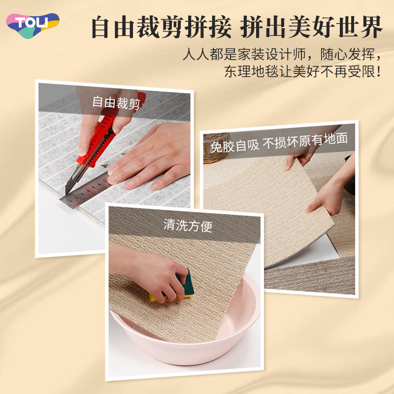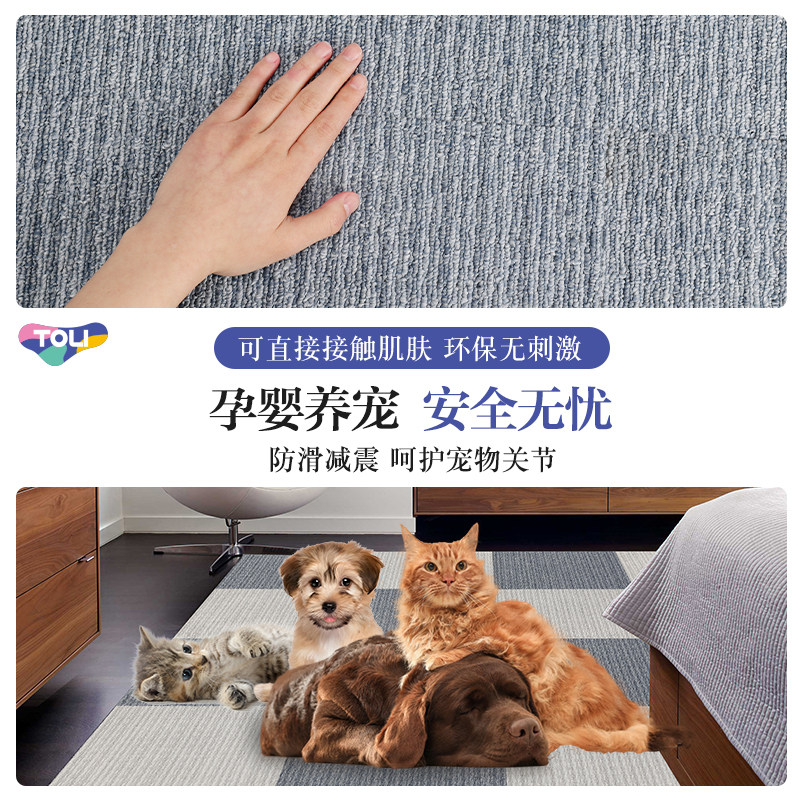 日本东理地毯(TOLI)进口拼接地毯,专为现代家庭设计,适用于客厅、卧室及儿童房等空间。采用环保材质,无毒无味,通过国际环保认证,安全健康,特别适合有儿童和宠物的家庭。模块化拼接设计,安装便捷,可自由组合形状与尺寸,轻松适配不同户型。表面防滑耐磨,底部防滑底背有效防止移位,保障居家安全。易清洁、抗污性强,日常打理简单,宠物抓挠也不易起球。色彩丰富、纹理细腻,兼具美观与实用,为家居增添温馨舒适感。TOLI以日本精工品质,打造安心、耐用、高颜值的地面解决方案。