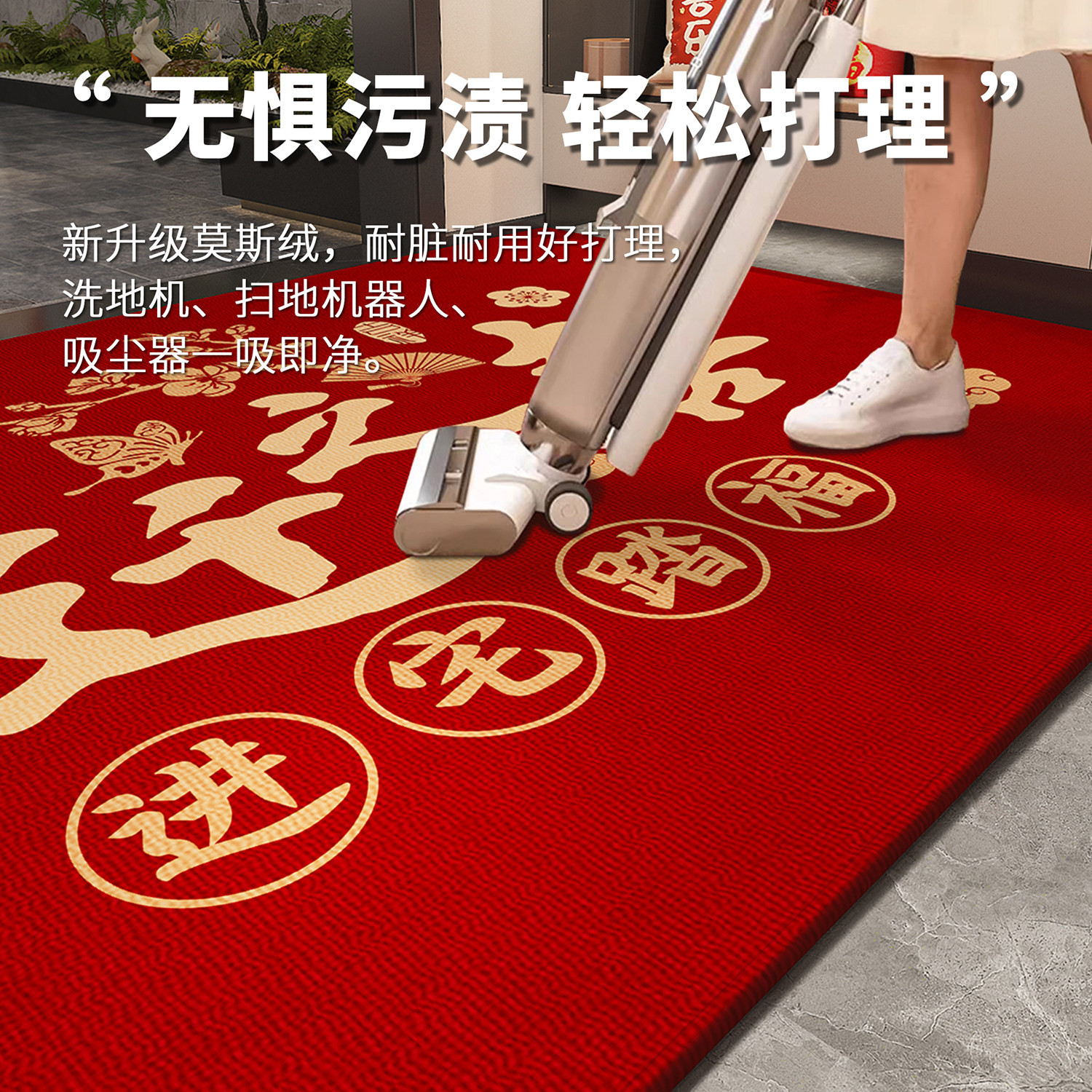 乔迁之喜,迎福纳祥!这款专为新房新居设计的红色喜庆入户门地垫,寓意红红火火、吉祥如意。采用优质材质,防滑耐磨、易清洁,有效阻隔灰尘,守护室内洁净。图案融合传统吉祥元素,如“福”字、祥云、如意纹等,洋溢浓郁节日氛围,彰显主人品味与好客之道。无论是自用还是作为乔迁贺礼,都寓意着对美好生活的向往与祝福。铺在门口,不仅提升家居格调,更让每一次归家都充满温暖与仪式感。喜庆红毯迎贵客,好运进门步步高!
