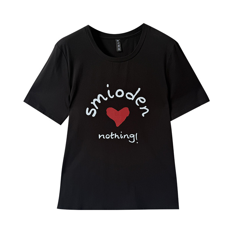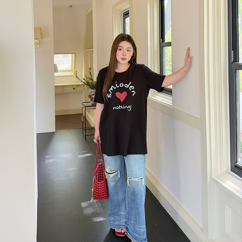 淘宝爱心印花纯棉大码T恤女夏2025新款胖妹妹mm宽松正肩上衣加肥加大